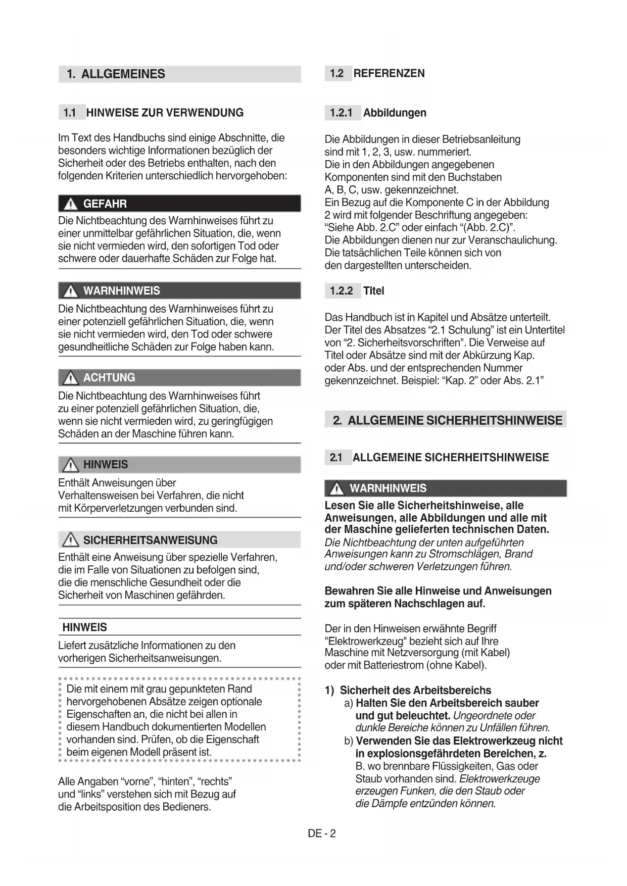 2. ALLGEMEINE SICHERHEITSHINWEISE