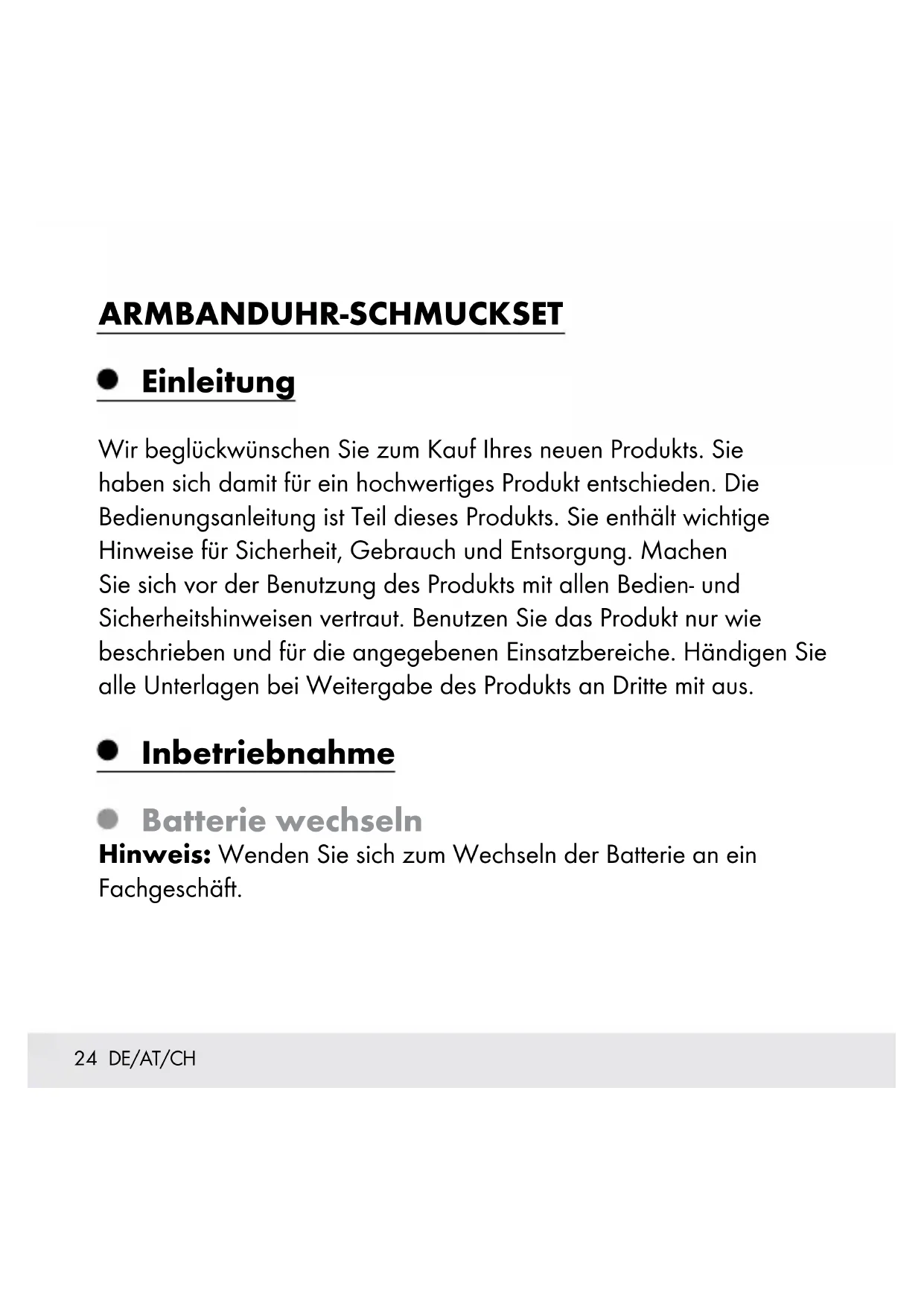 ARMBANDUHR- SCHMUCKSET Bedienungs- und Sicherheitshinweise