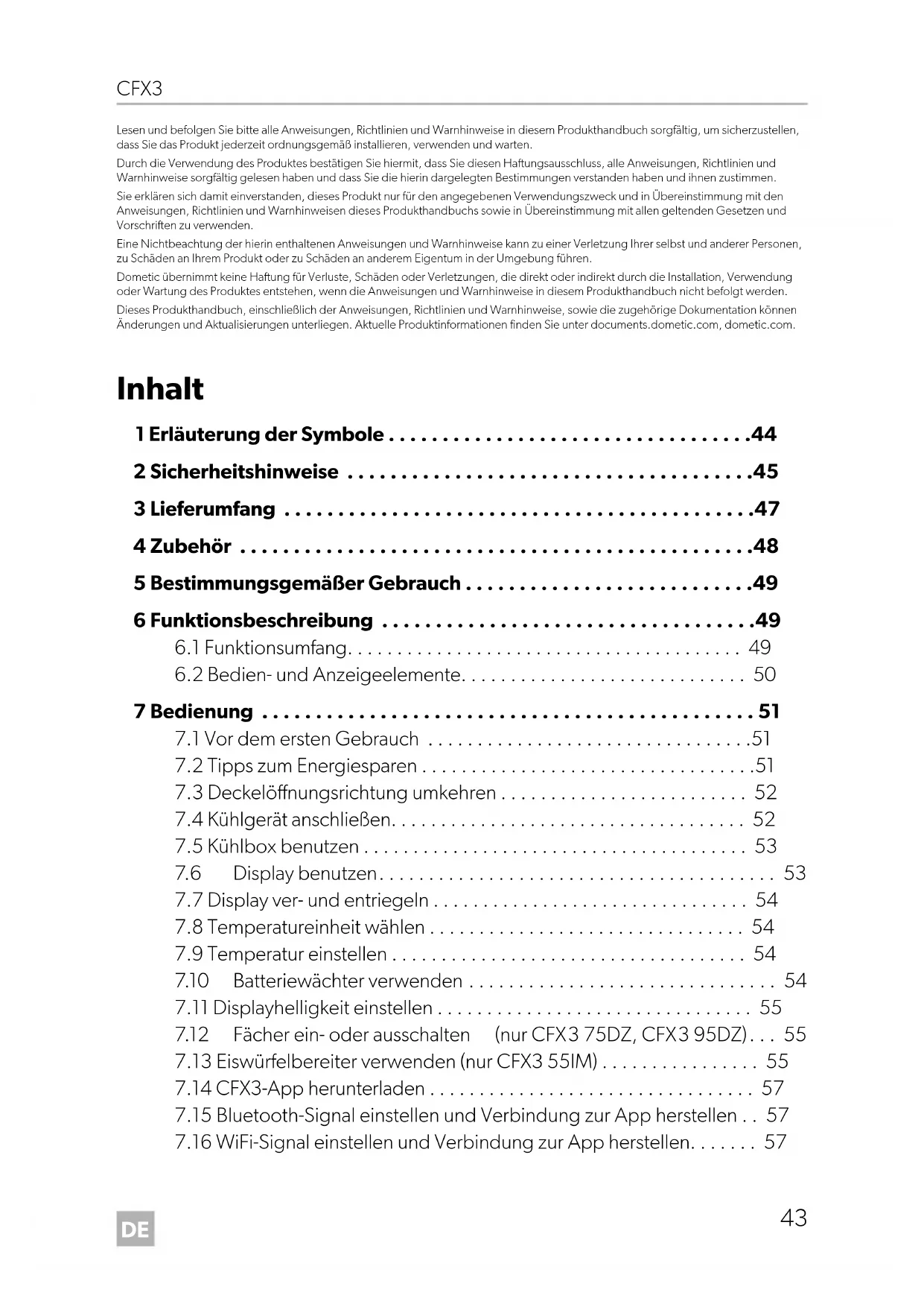 DometicCFX3_OPM_4445103157_EMEA16_202x-xx-xx.book Seite 43 Dienstag, 27. Oktober 2020 5:42 17DE Erläuterung der Symbole CFX3