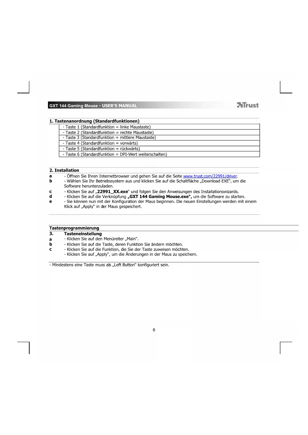 Falls das Problem fortbesteht, wenden Sie sich an den Helpdesk unter www.trust.com/22991/faq.GXT 144 Gaming Mouse - USER’S MANUAL