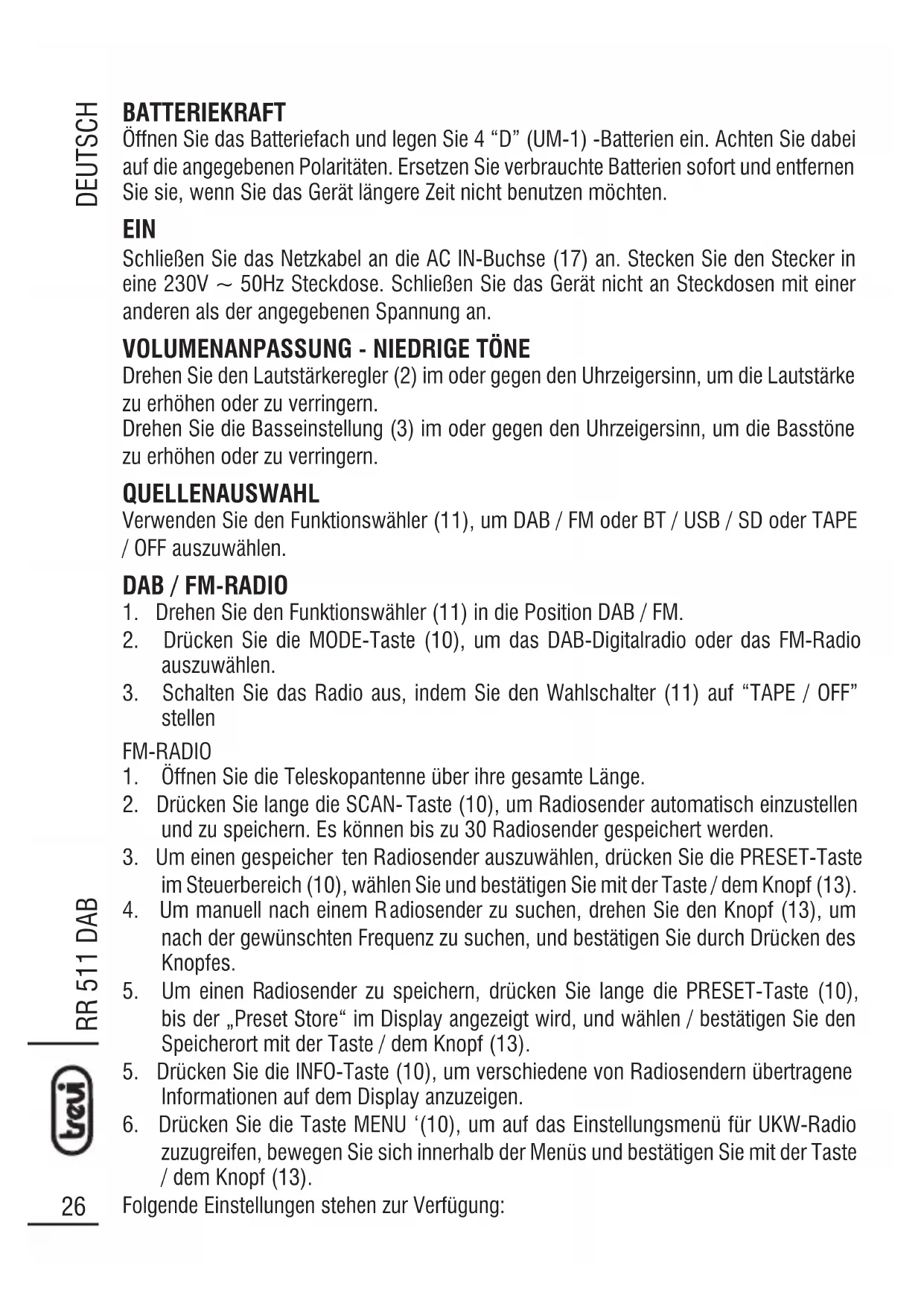 BEDIENUNGSANLEITUNG RR 511 DAB Trevi