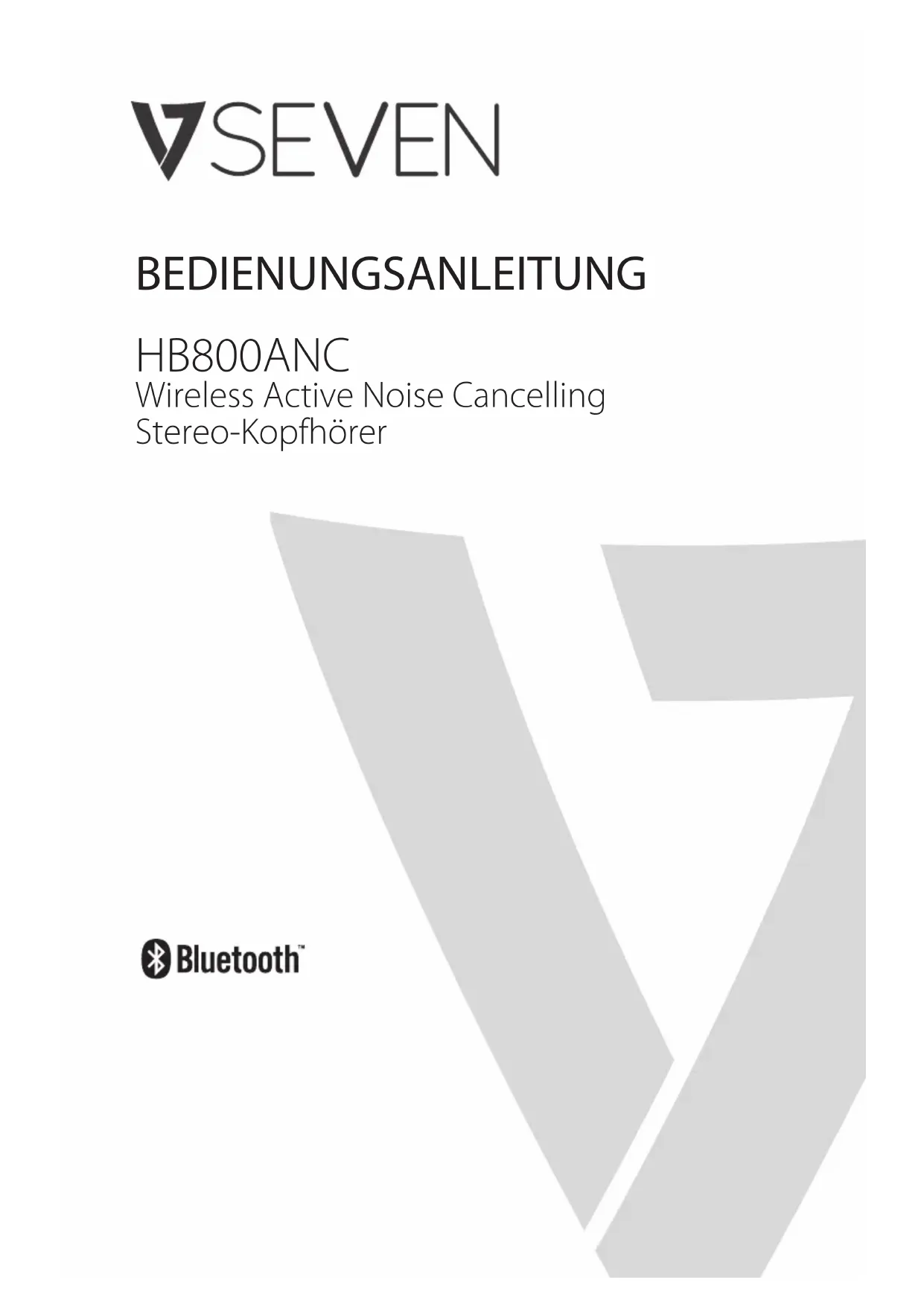 wird die Bluetooth-Funktion automatisch deaktiviert. Sprachassistent Funktion Gerätestatus Bedienung Details Sprachassistent Einschalten Ein/Aus-Taste 2Sekunden gedrückthalten –Produktspezikationen Technische Daten Bluetooth Version v5.0 Pairing-Name des Geräts V7 HB800 Bluetooth-Reichweite >15m Signalübertragung 2402-2480 MHz Active Noise Cancellation (ANC) ANC-Eekt: 30 +/- 2 dB Impedanz 2,2 KΩ Empndlichkeit -35 +/- 1dB Lautsprecher Durchmesser Φ40 +/- 0,3mm Frequenzbereich 20 Hz – 20KHz Impedanz 32 Ω +/- 15% Empndlichkeit / S.P.L. 120 ± 3 dB (@ 1 KHz, IEC318- Test) Nennleistung 10mW Akku Typ Wiederauadbare Lithium-Ionen- Batterie Kapazität 500mAh Akkulaufzeit 26 Stunden (Bluetooth bei 85% Lautstärke) 23 Stunden (Bluetooth und ANC bei 85% Lautstärke) Ladezeit 0,8 – 1 Stunde Ladestrom 1,5 A, 5V Ladekabel USB USB-C-Stecker Länge 0,8m Audiokabel Typ 3,5-mm-TRS-Stereokabel Länge 1,2mMANUAL DE USUARIO HB800ANC Auricular estéreo inalámbrico con cancelación de ruido activaCaracterísticas principales