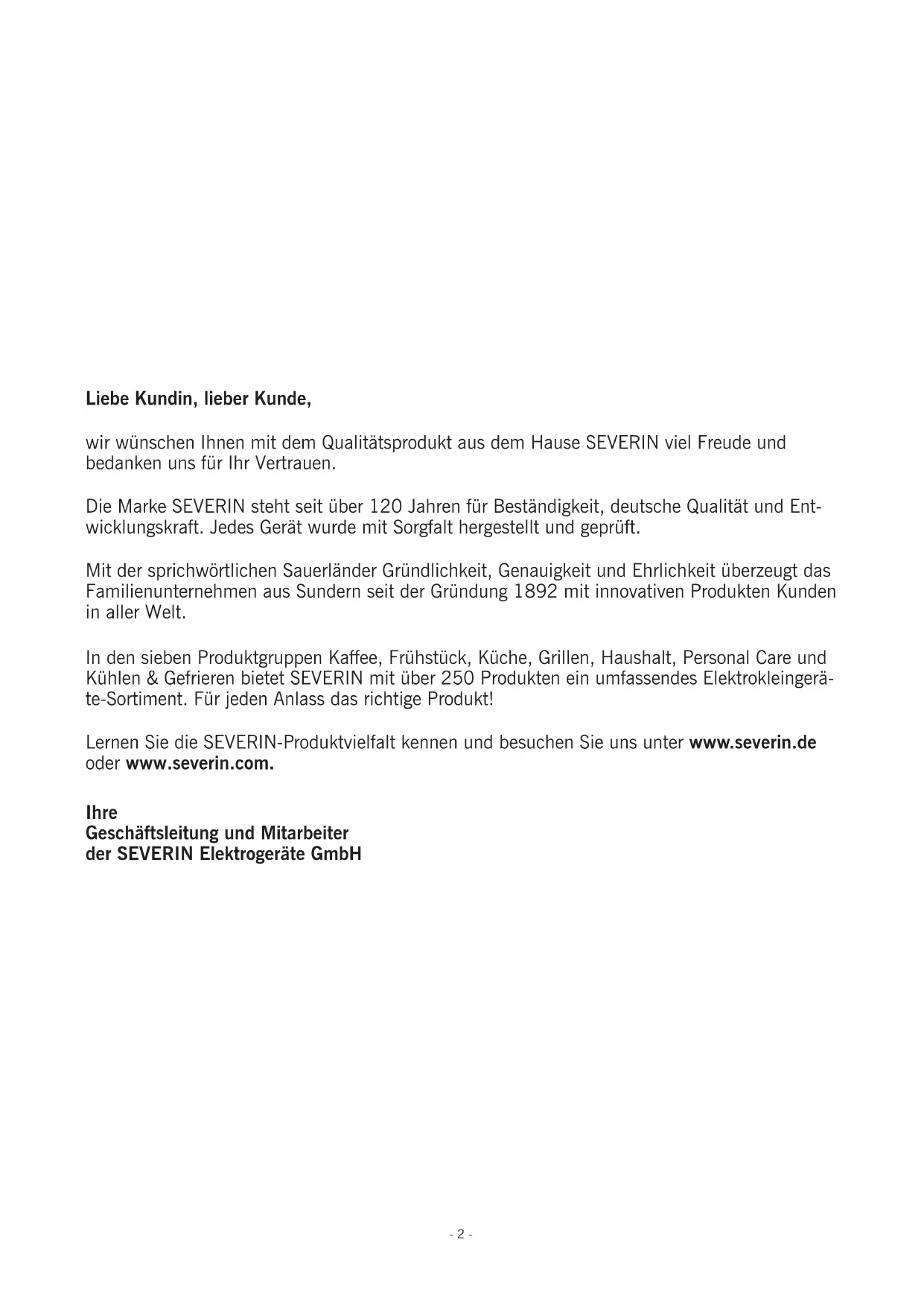 Mo – Fr von 8.00 – 17.00 Uhr (nicht an Feiertagen) Telefax (02933) 982-480 E-Mail: service@severin.de Österreich 0820 / 890 015 * werktags von 8 bis 19 Uhr, Samstags von 9 bis 13 Uhr