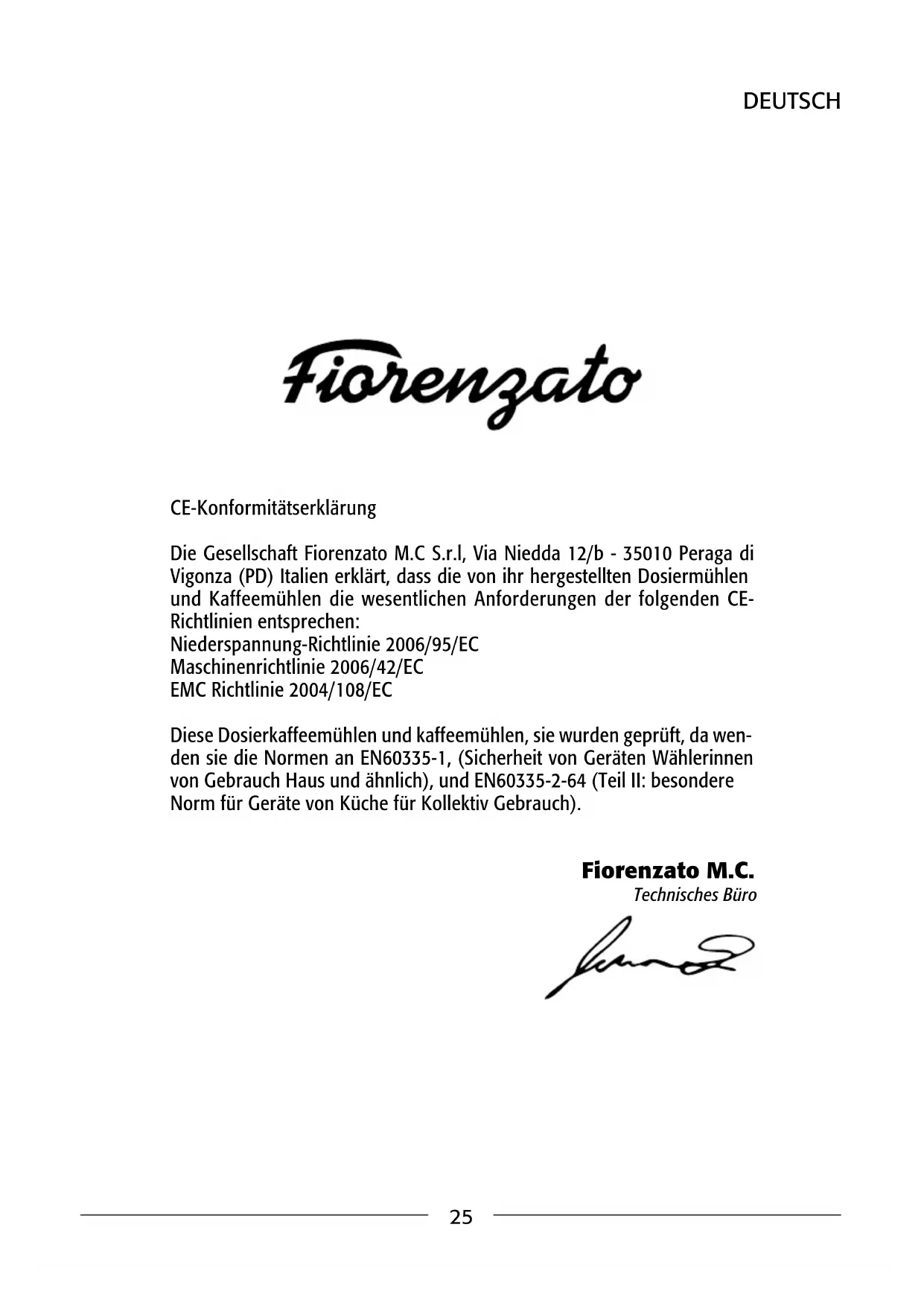 Finden Sie kostenlos die Bedienungsanleitung des Geräts F4 E Nano Fiorenzato als PDF.