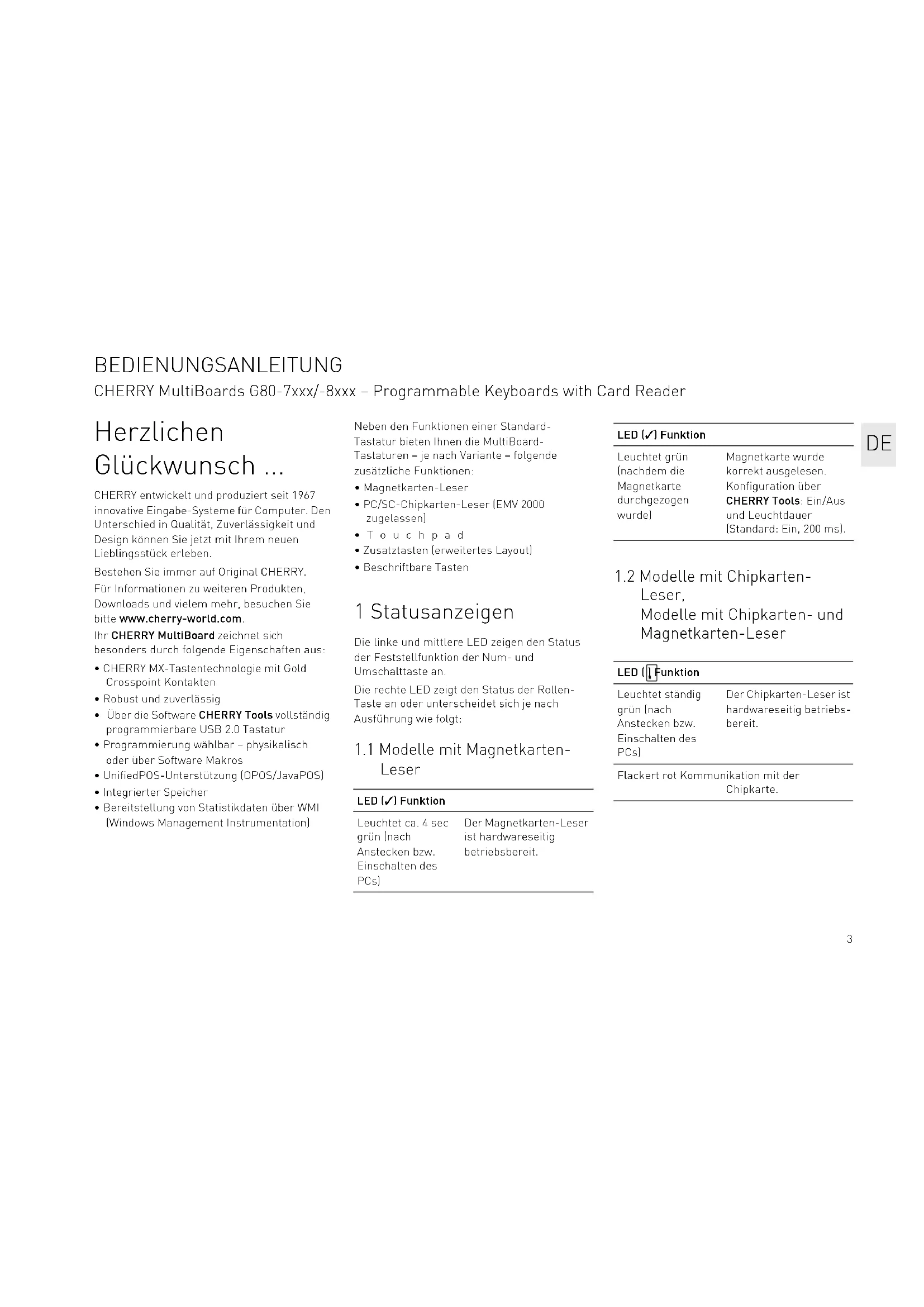 - CHERRY MultiBoards G80-7xxx/-8xxx Programmable Keyboards with Card Reader Bedienungsanleitung p. 3
