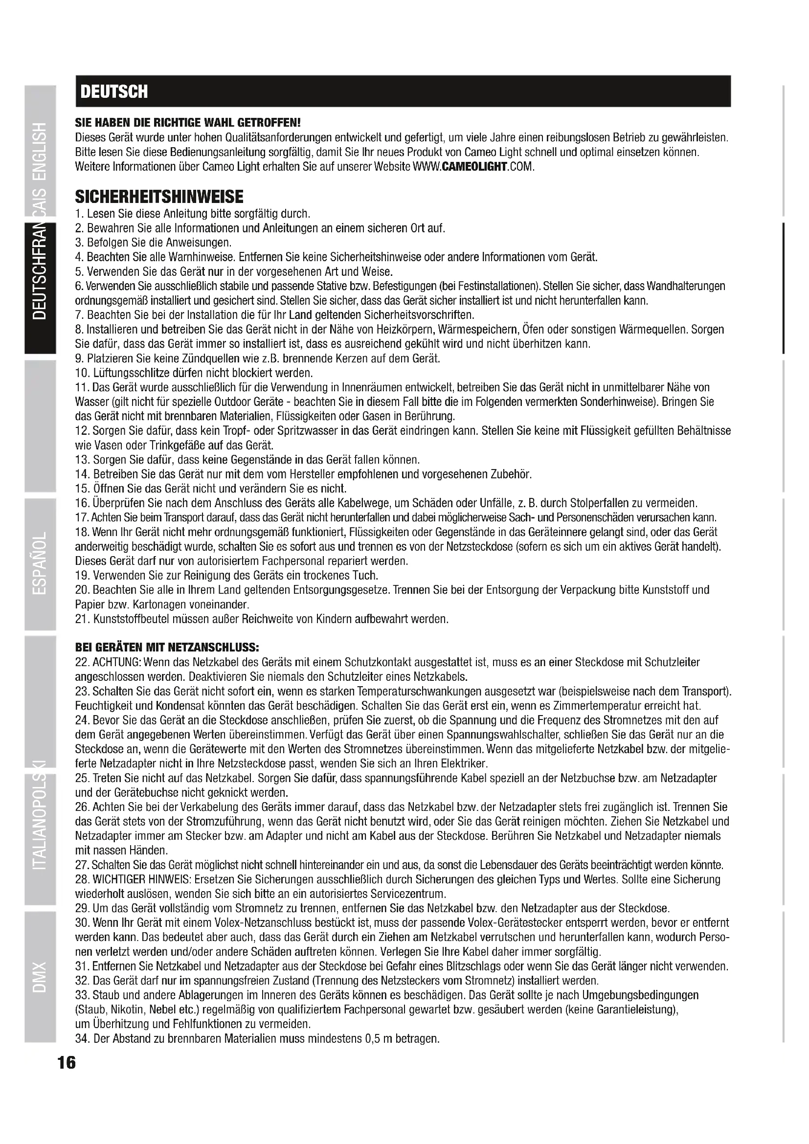 Weitere Informationen uber Cameo Light erhalten Sie auf unserer Website WWW.CAMEOLIGHT.COM.