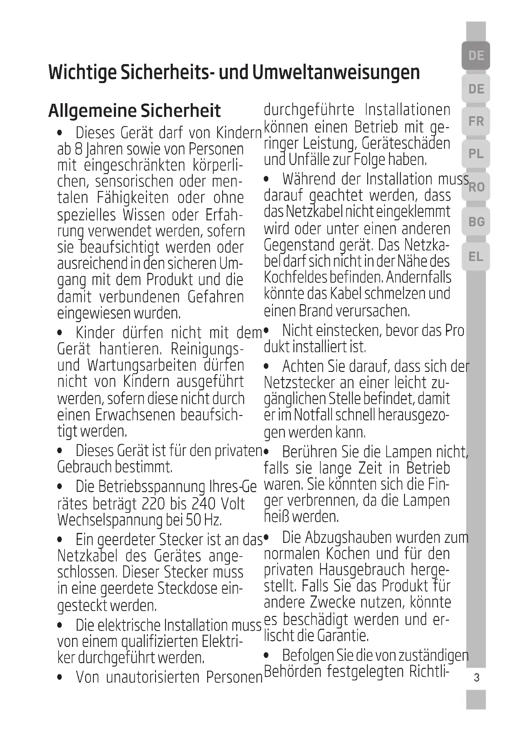 Wichtige Sicherheits- und Umweltanweisungen4 Wichtige Sicherheits- und Umweltanweisungen nien zum Abführen von Abluft (diese Warnung ist bei Einsatz ohne Abzug nicht zutreffend).