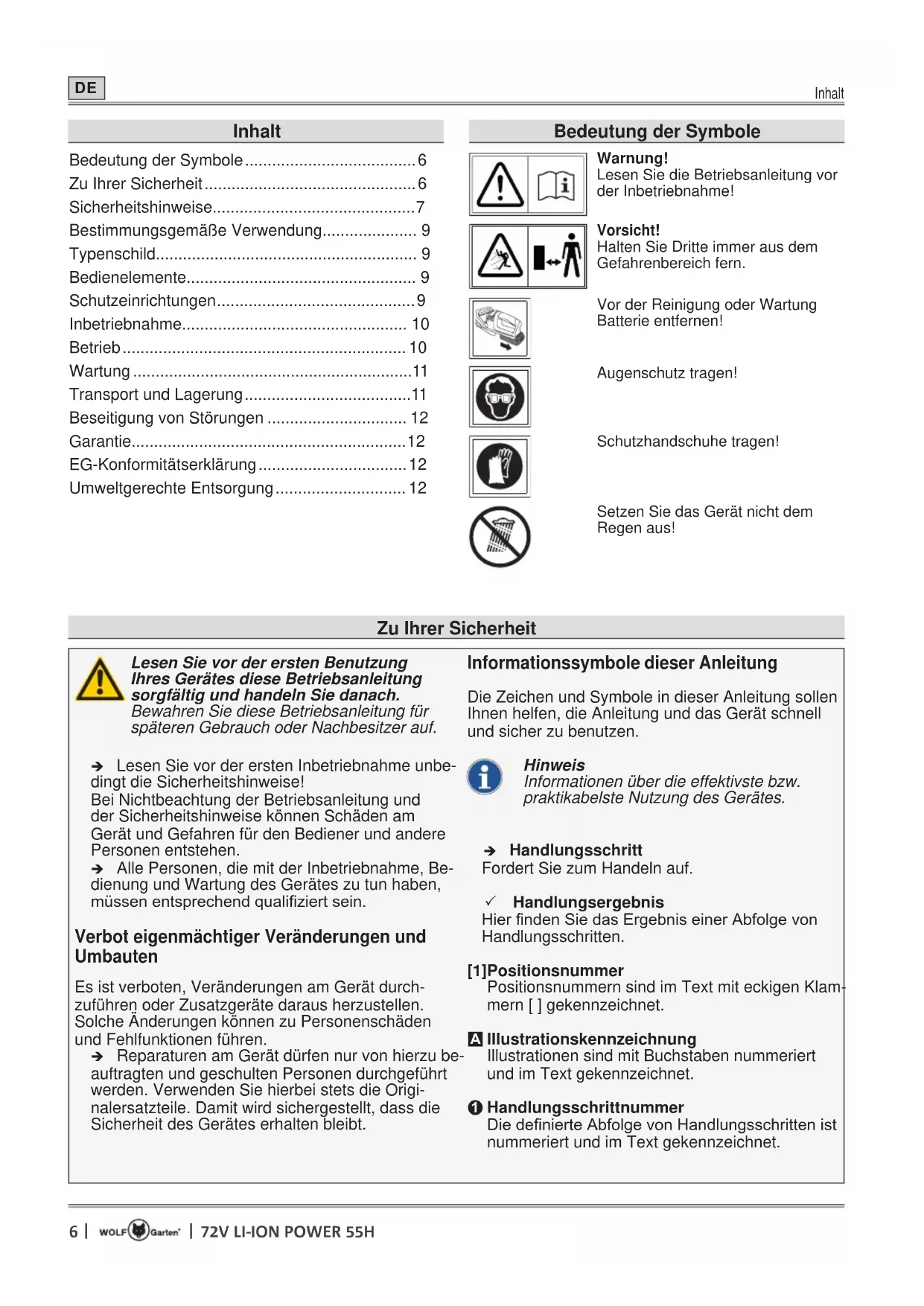 BEDIENUNGSANLEITUNG 72V LiIon Battery Power 55H Wolf Garten