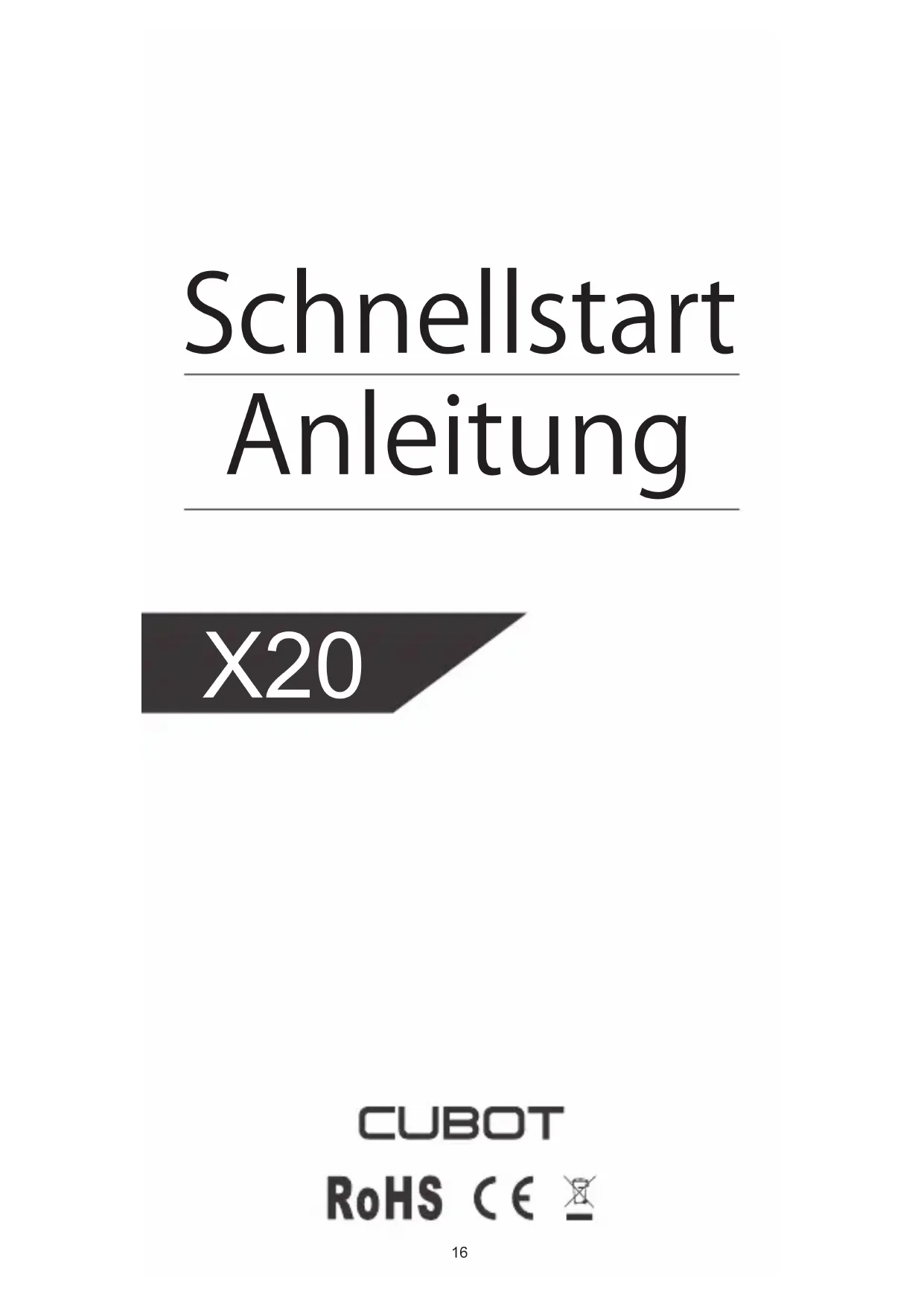 Laden Sie die Anleitung für Ihr Telefon kostenlos im PDF-Format! Finden Sie Ihr Handbuch X20 - Cubot und nehmen Sie Ihr elektronisches Gerät wieder in die Hand. Auf dieser Seite sind alle Dokumente veröffentlicht, die für die Verwendung Ihres Geräts notwendig sind. X20 von der Marke Cubot.