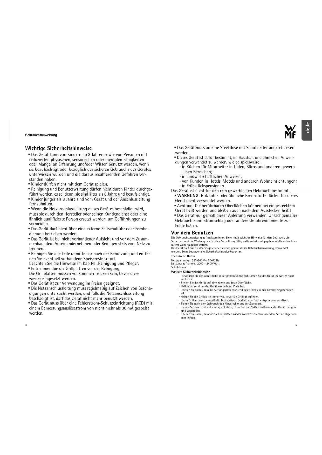 1b4 5 dede Gebrauchsanweisung Wichtige Sicherheitshinweise