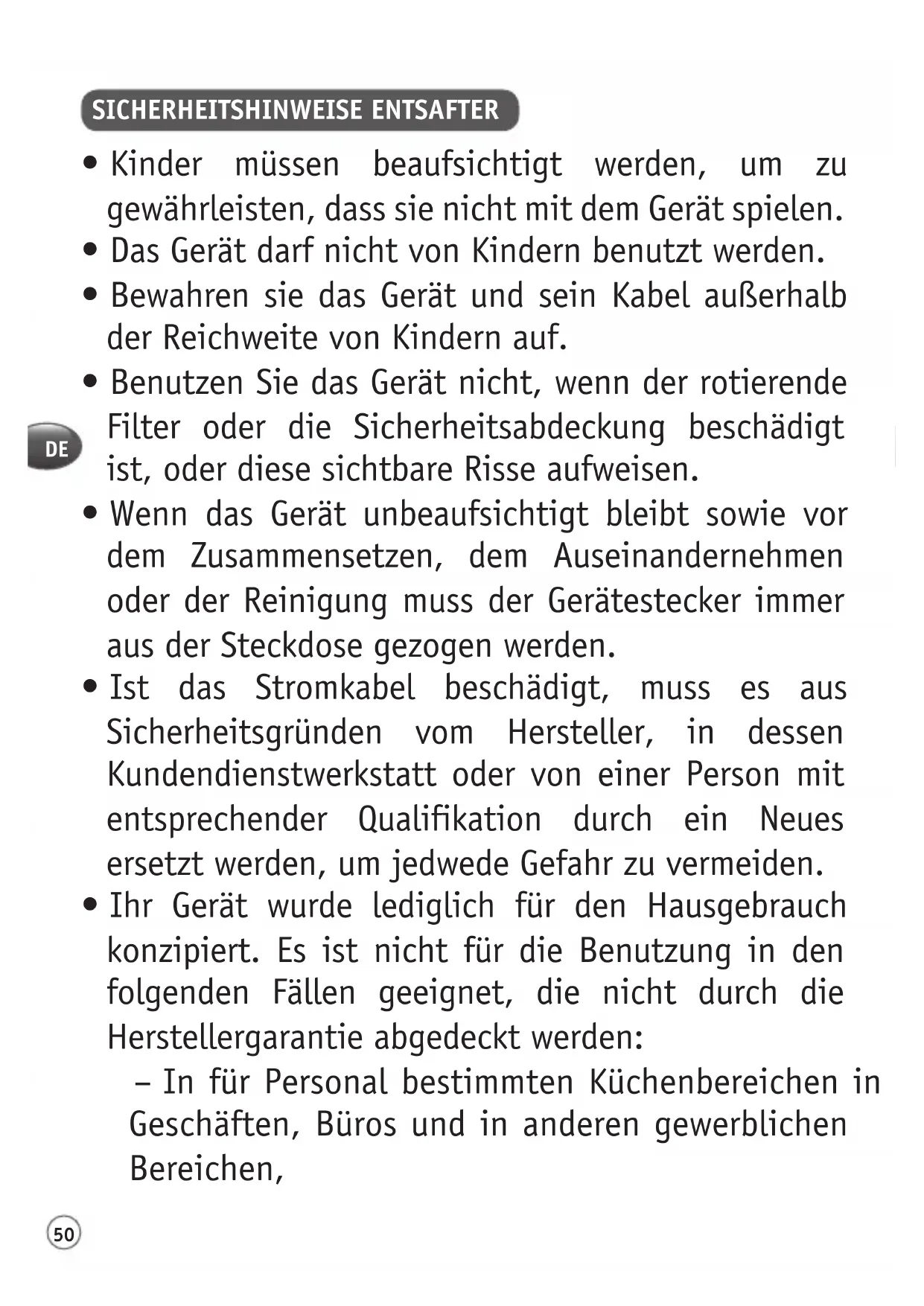 SICHERHEITSHINWEISE ENTSAFTER