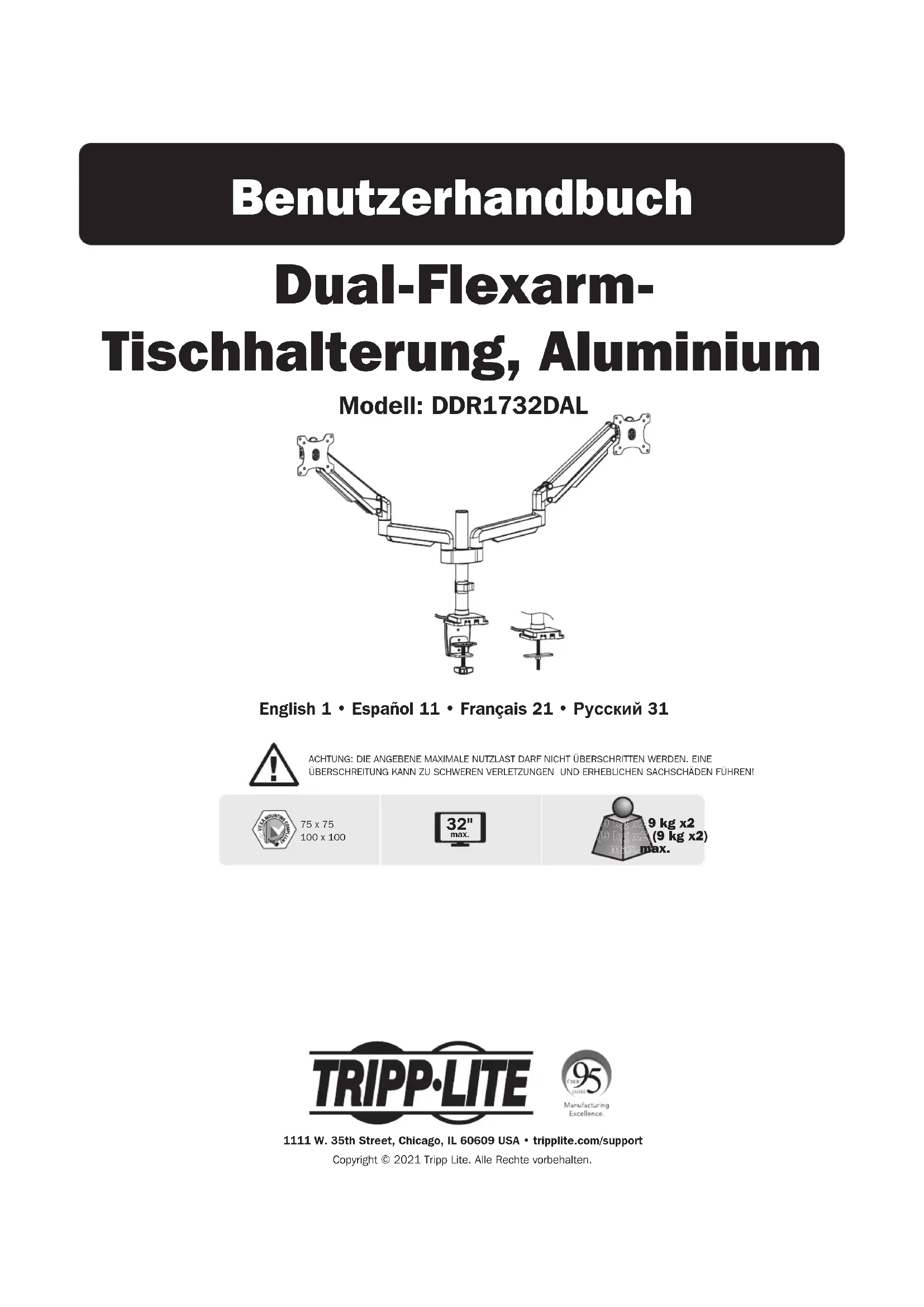 BEDIENUNGSANLEITUNG FlexArm DDR1732DAL Tripp Lite