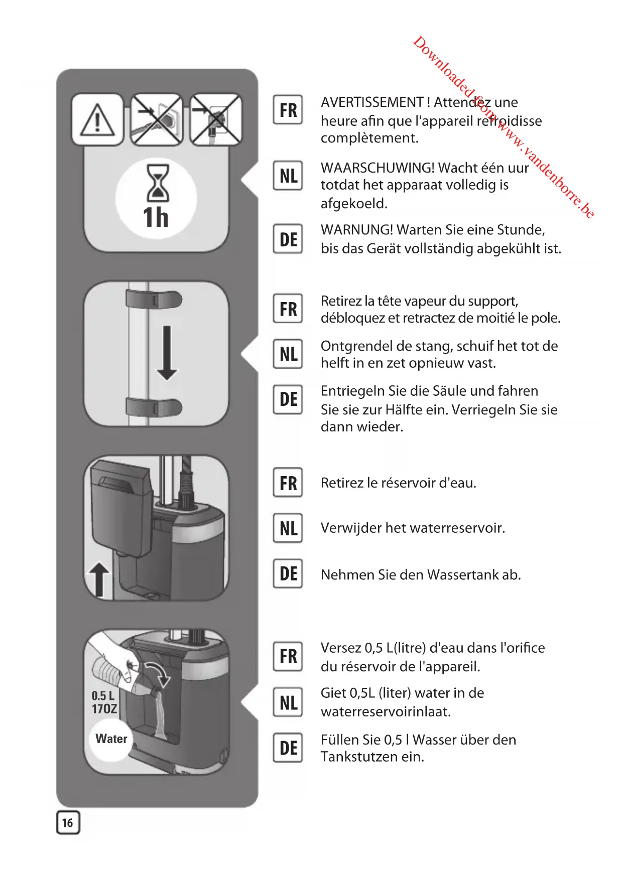 WARNUNG! Warten Sie eine Stunde, bis das Gerät vollständig abgekühlt ist.