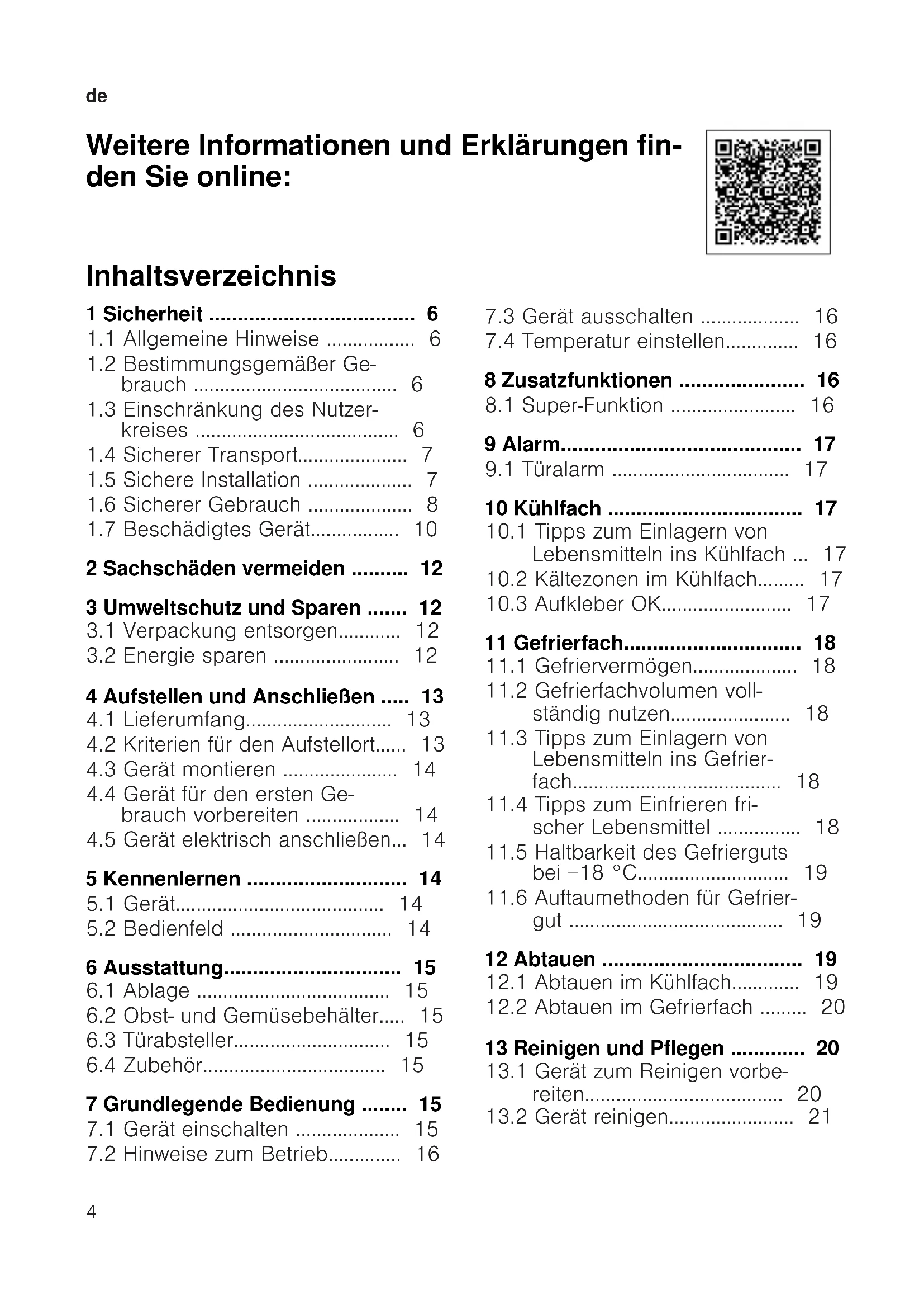 Weitere Informationen und Erklärungen fin- den Sie online: Inhaltsverzeichnis 1 Sicherheit ....................................6