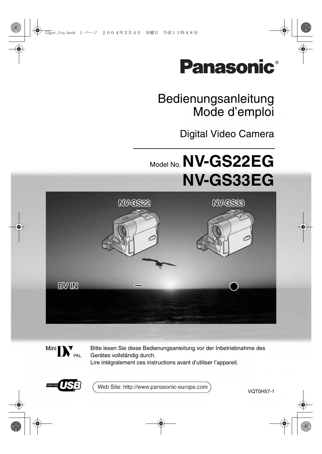 Bedienungsanleitung Mode d’emploi Digital Video Camera Model No. NV-GS22EG NV-GS33EG Bitte lesen Sie diese Bedienungsanleitung vor der Inbetriebnahme des Gerätes vollständig durch. Lire intégralement ces instructions avant d’utiliser l’appareil.