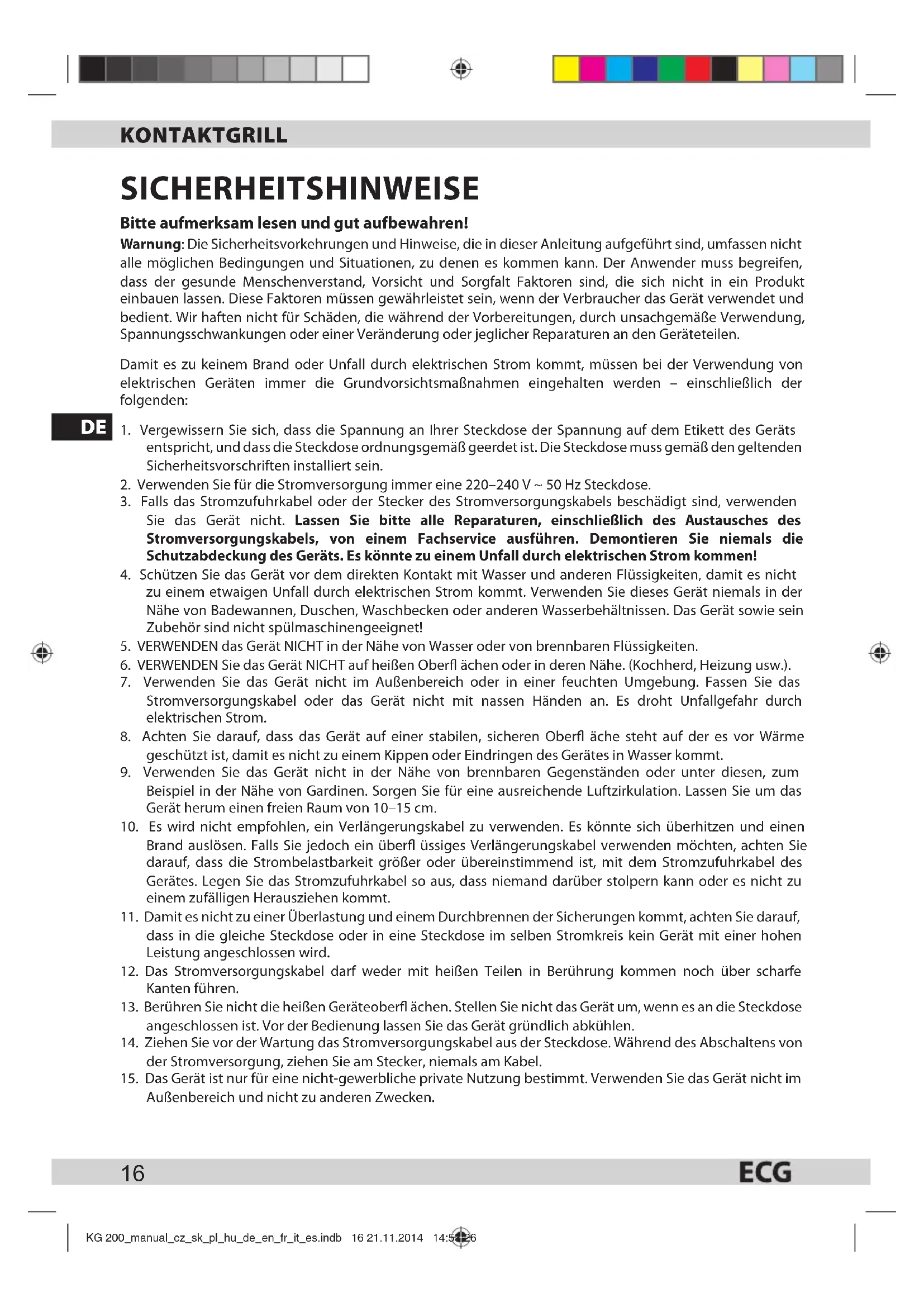 - Die Lebensmittel sollten vor dem Verspeisen ausreichend durchgebraten sein. KG 200_manual_cz_sk_pl_hu_de_en_fr_it_es.indb 17 21.11.2014 14:53:2618