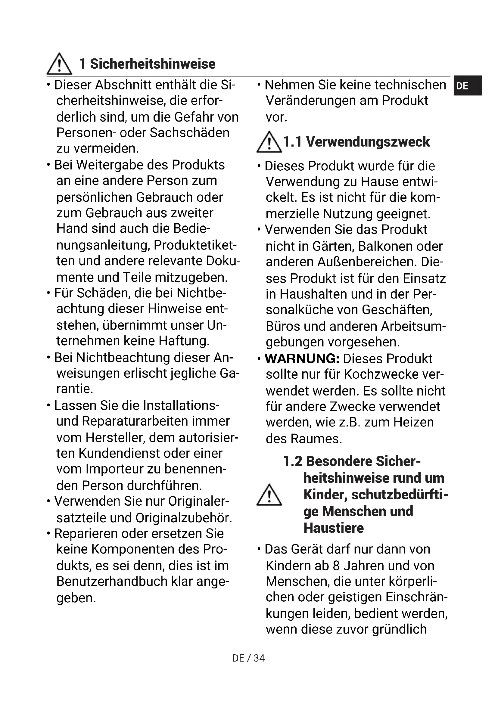 FRDE / 34 1 Sicherheitshinweise