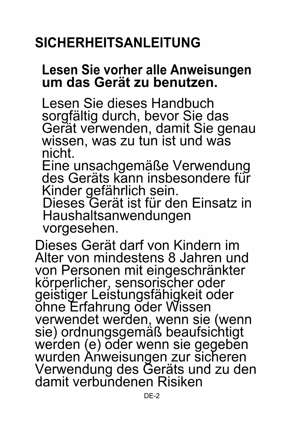 Lassen Sie das Gerät nicht ohneDE-7 Aufsicht von Kindern benutzen.