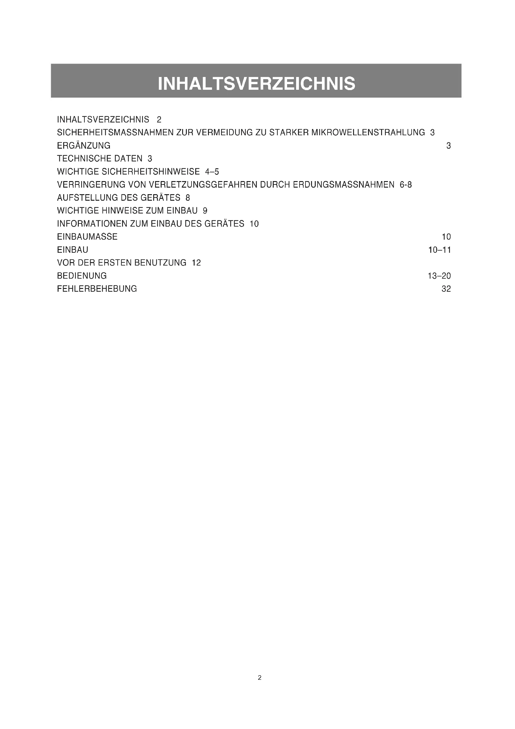 FEHLERBEHEBUNG Das Gerät ist gemäß der Richtlinie für Elektro- und Elektronik- Altgeräte (WEEE) separat zu entsorgen. Entsorgen Sie das Gerät niemals mit dem normalen Hausmüll. Geben Sie das Gerät nach Möglichkeit bei WEEE-Sammelstellen ab.33 CONTENTS CONTENTS 33 PRECAUTIONS TO AVOID POSSIBLE EXPOSURE TO EXCESSIVE MICROWAVE ENERGY 34 ADDENDUM 34 SPECIFICATIONS 34