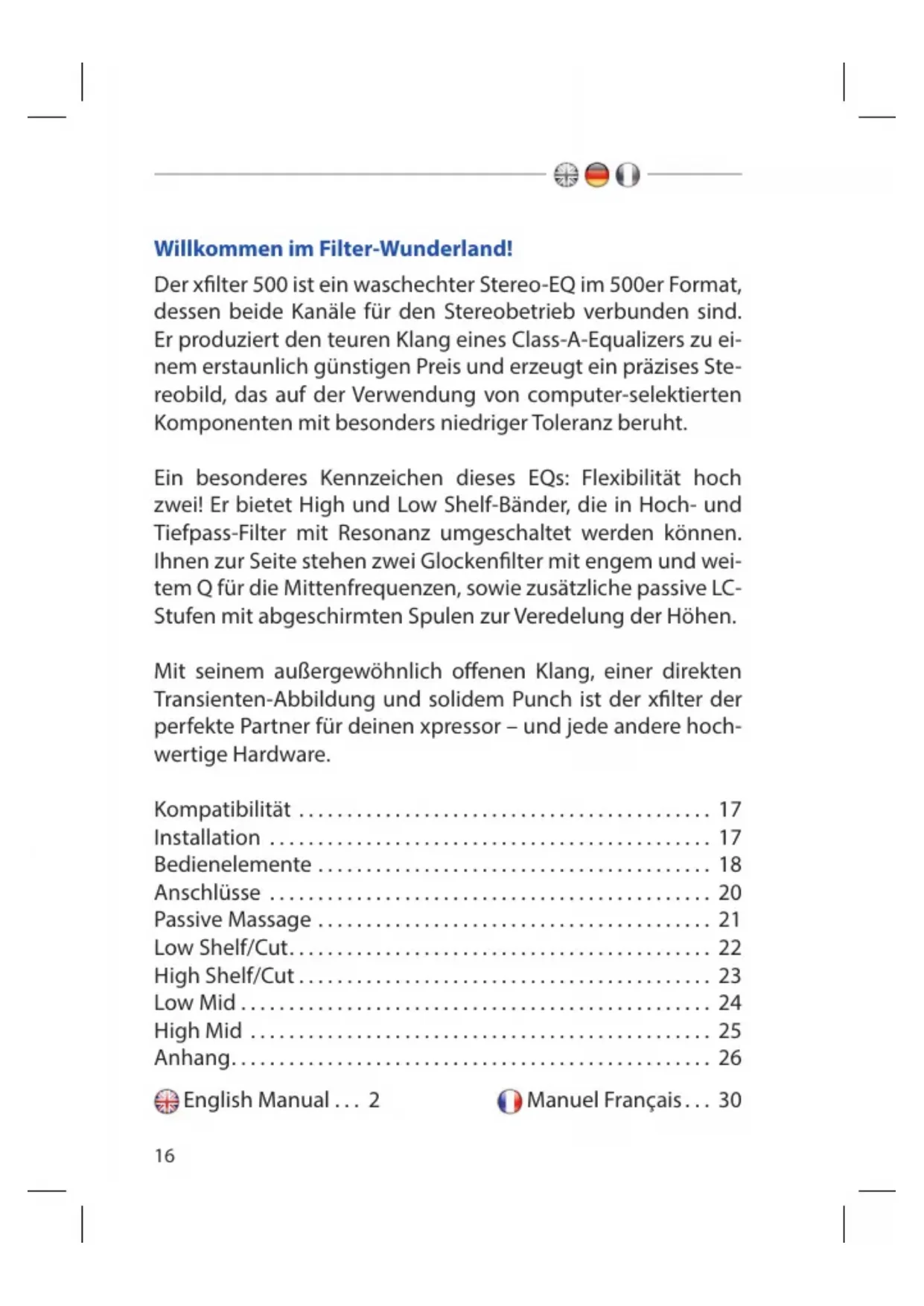 Xfilter 500 - Mischpult Elysia - Kostenlose Bedienungsanleitung
