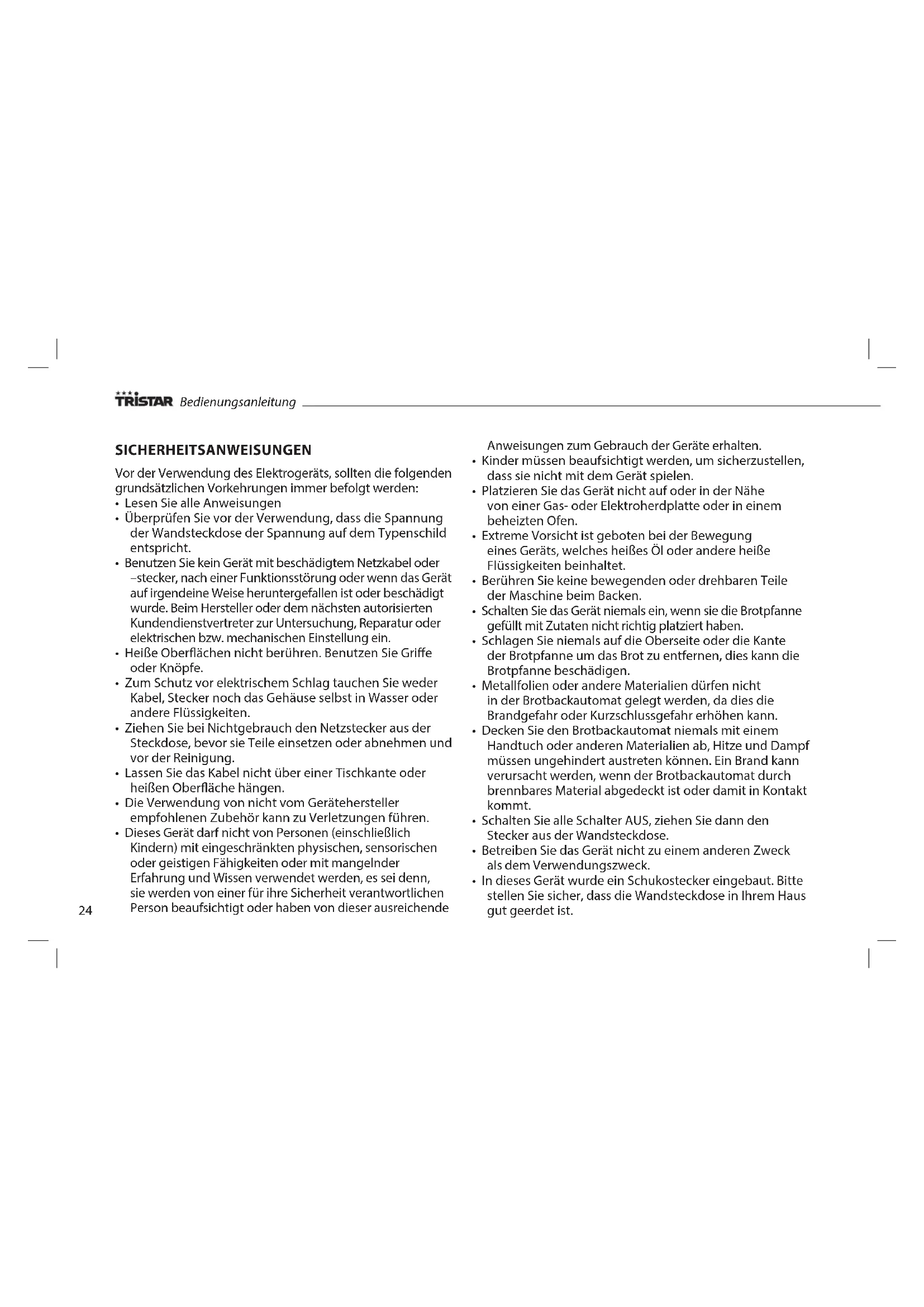 BM4586CH - Brotmaschine TRISTAR - Kostenlose Bedienungsanleitung