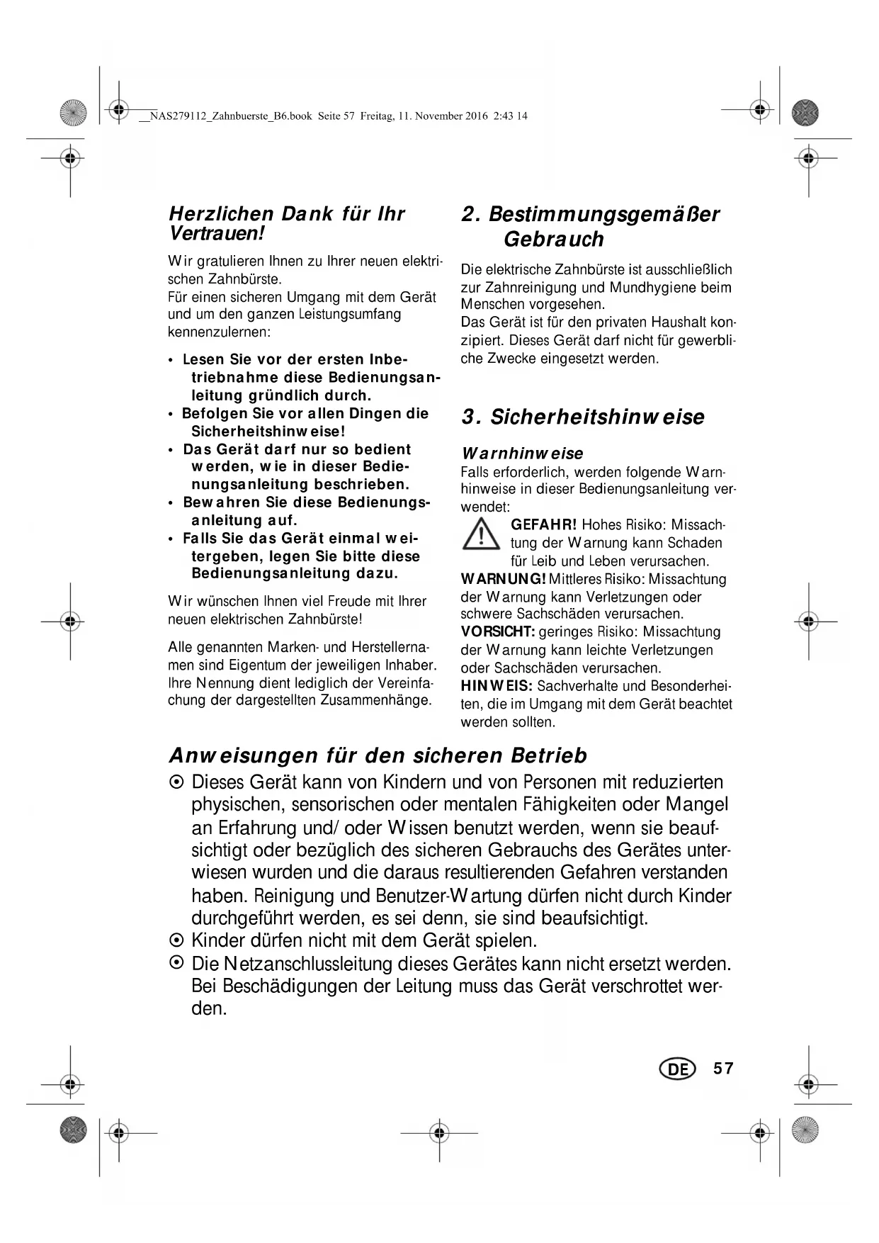 Herzlichen Dank für Ihr Vertrauen! Wir gratulieren Ihnen zu Ihrer neuen elektri- schen Zahnbürste. Für einen sicheren Umgang mit dem Gerät und um den ganzen Leistungsumfang kennenzulernen: