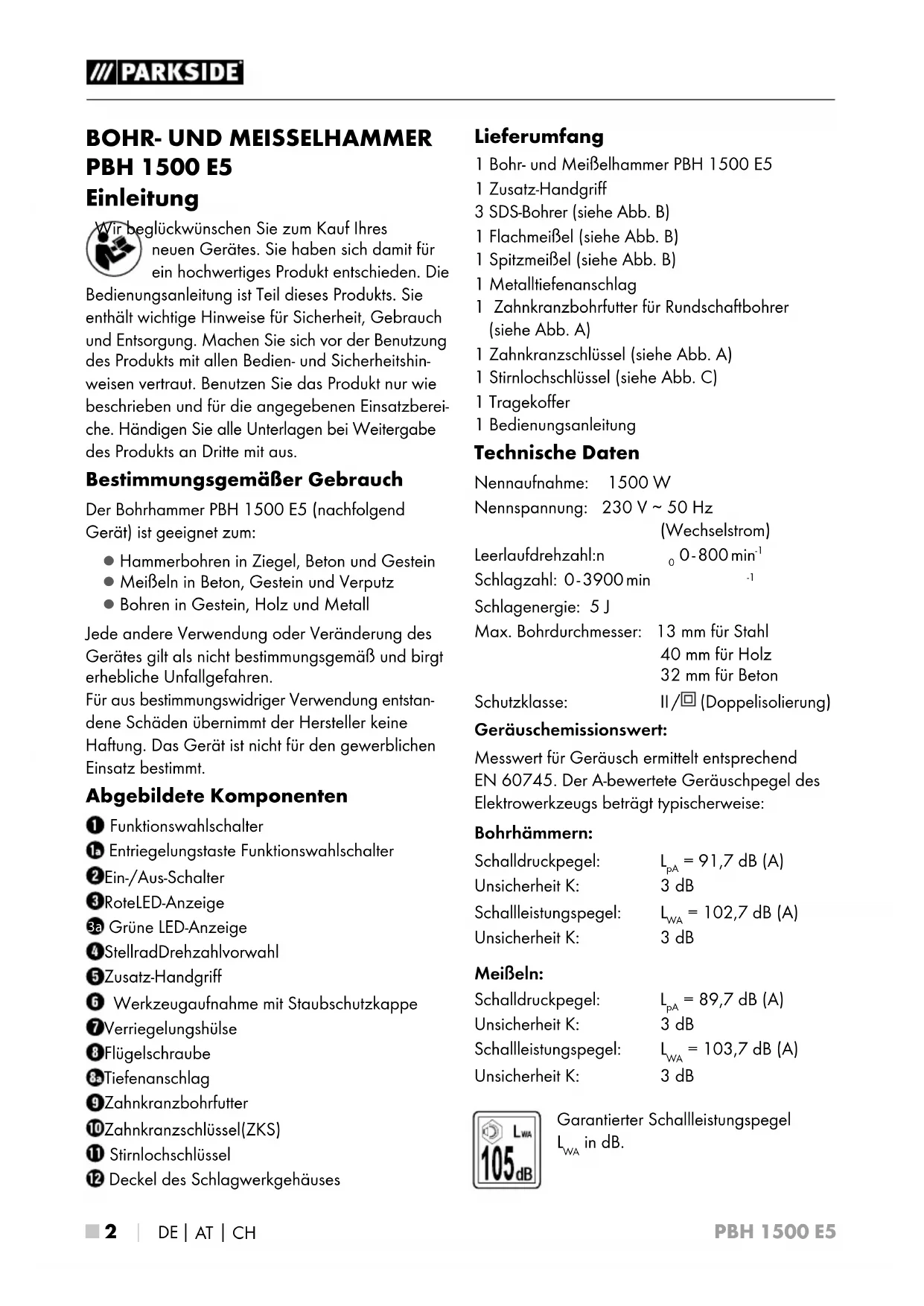 PBH 1500 E5 - Bohrmaschine PARKSIDE - Kostenlose Bedienungsanleitung