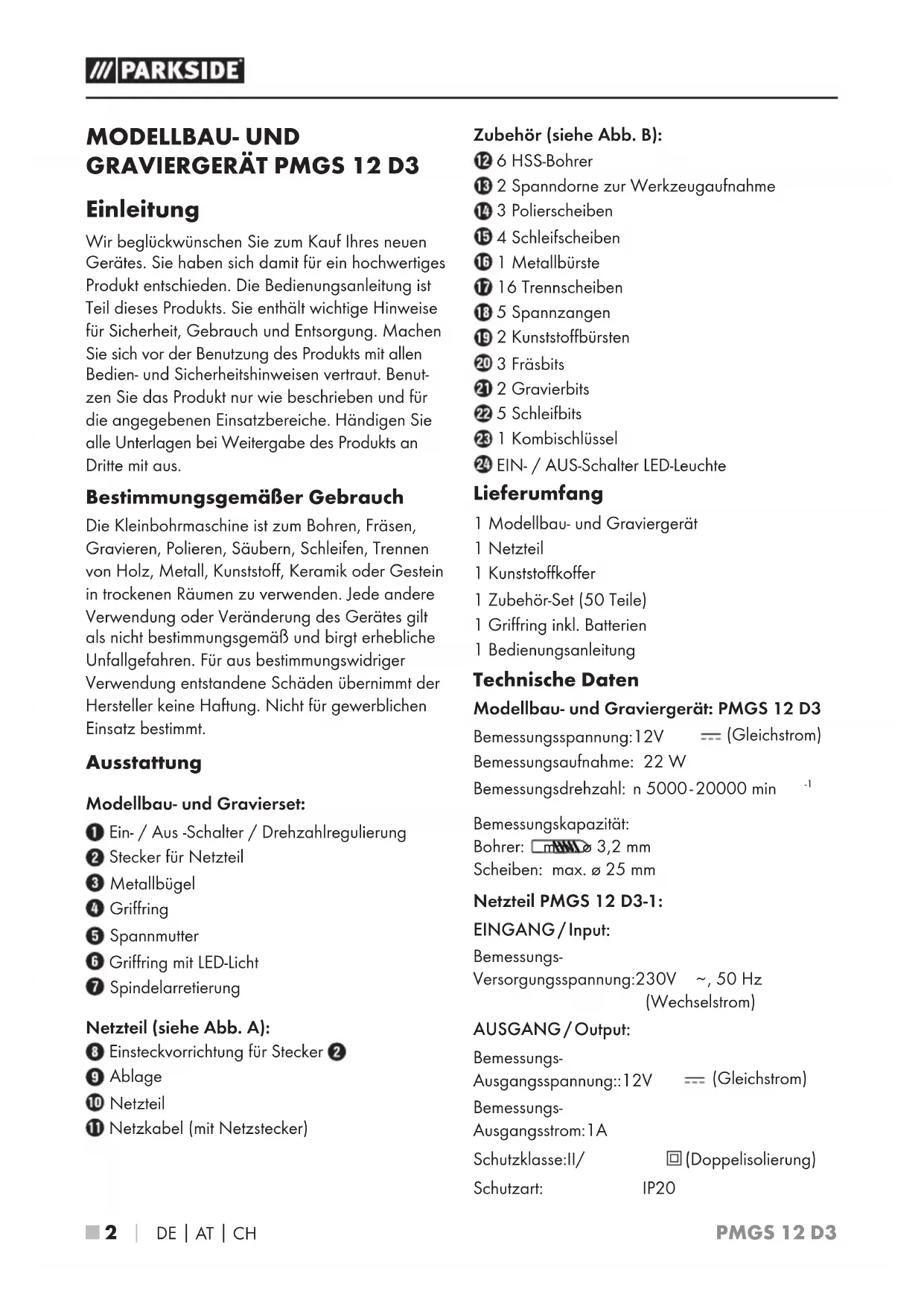 PMGS 12 D3 - Nicht kategorisiert PARKSIDE - Kostenlose Bedienungsanleitung