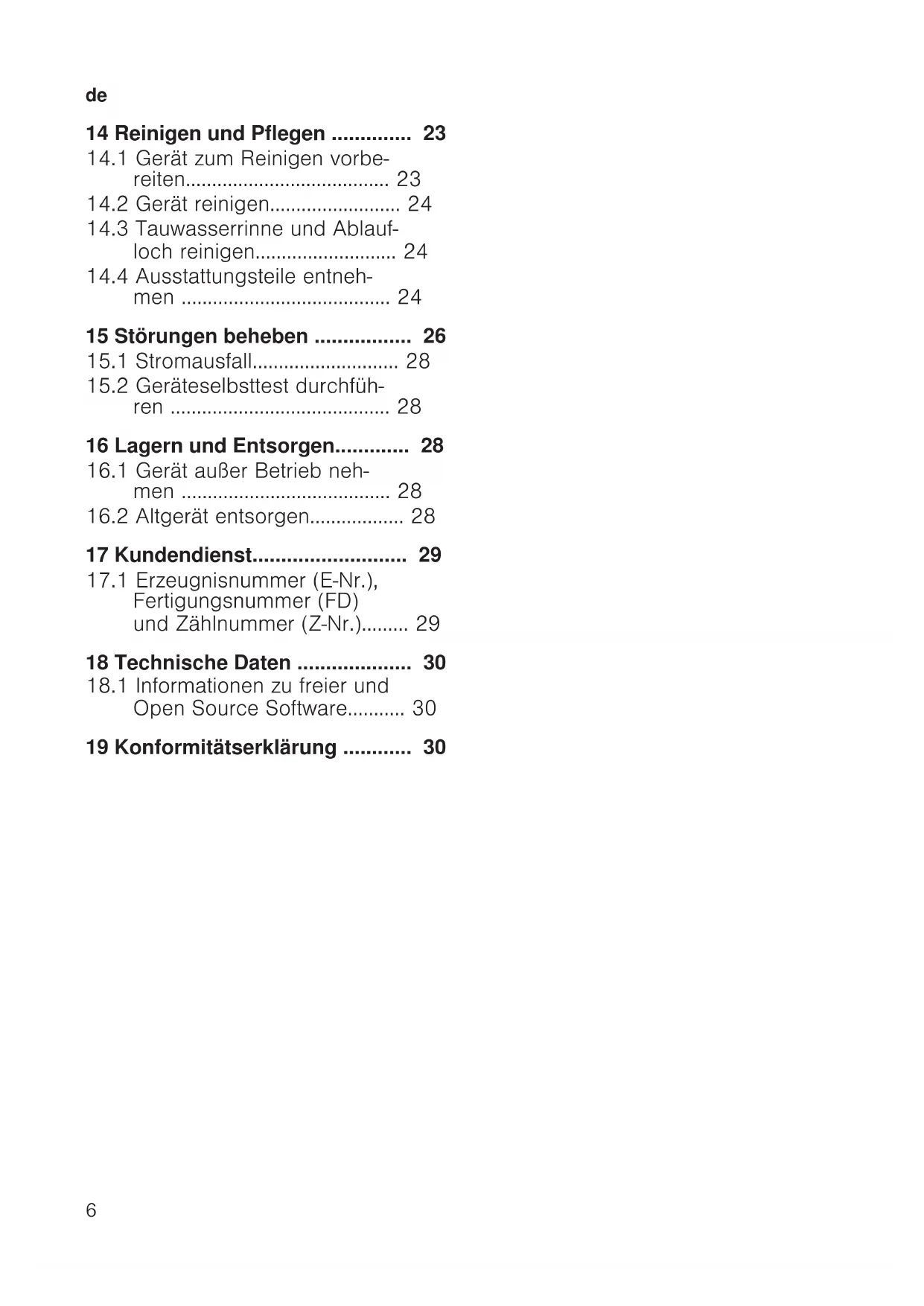13.2 Abtauen im Gefrierfach ..........23de