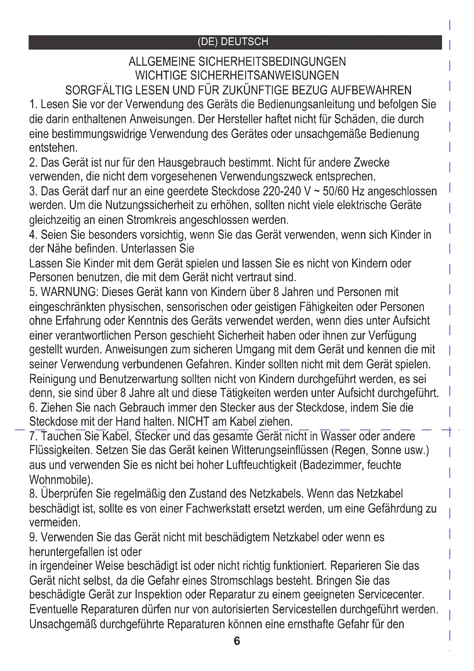 5. WARNUNG: Dieses Gerät kann von Kindern über 8 Jahren und Personen mit