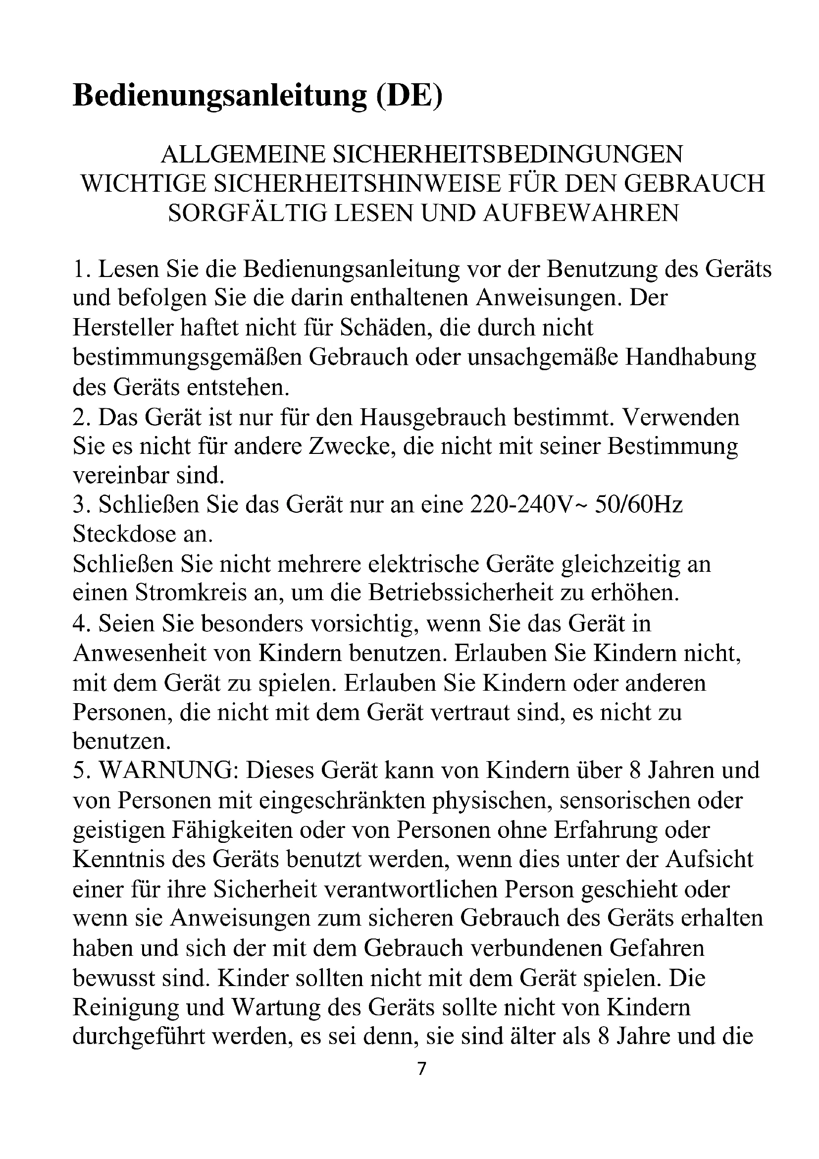 5. WARNUNG: Dieses Gerät kann von Kindern über 8 Jahren und
