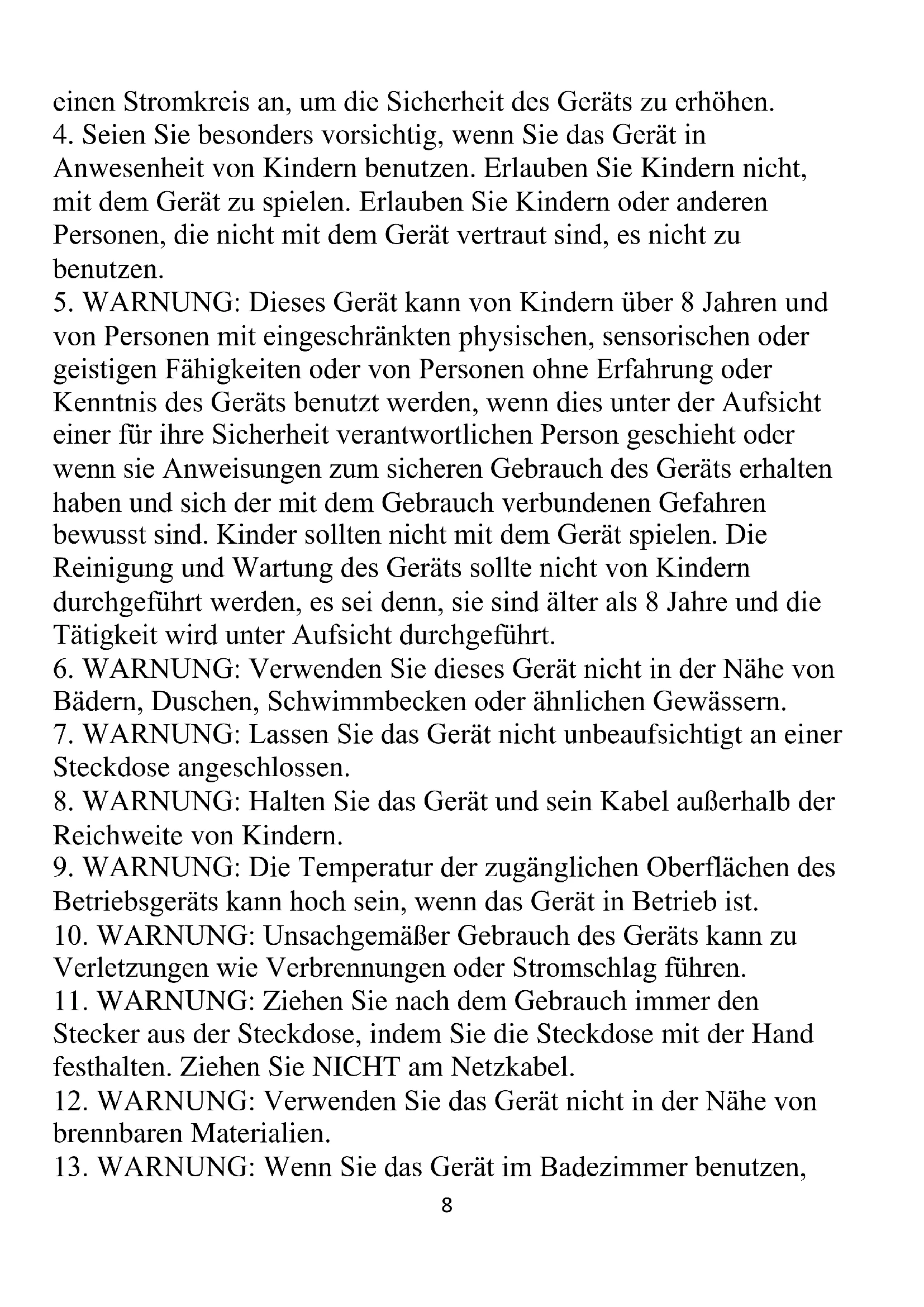 5. WARNUNG: Dieses Gerät kann von Kindern über 8 Jahren und