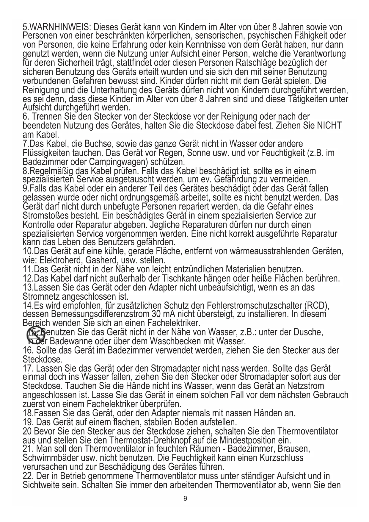 23. Schließen Sie niemals den Thermoventilator an eine automatische