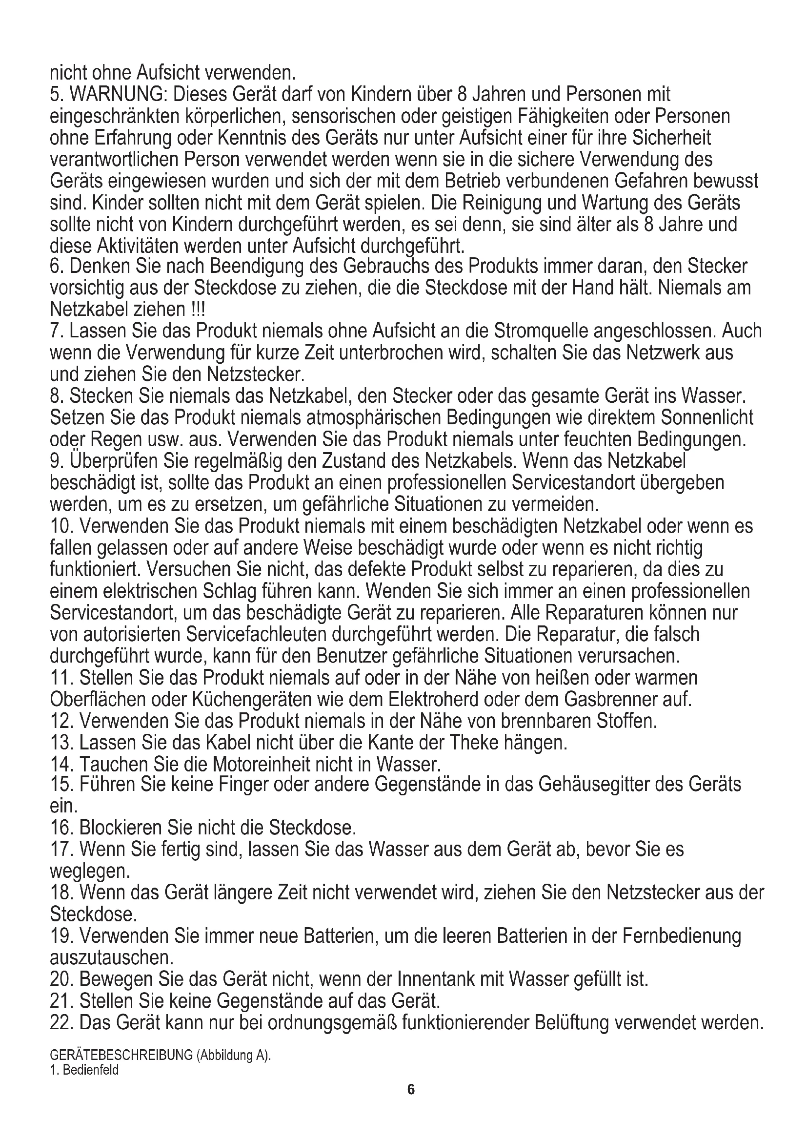 5. WARNUNG: Dieses Gerät darf von Kindern über 8 Jahren und Personen mit