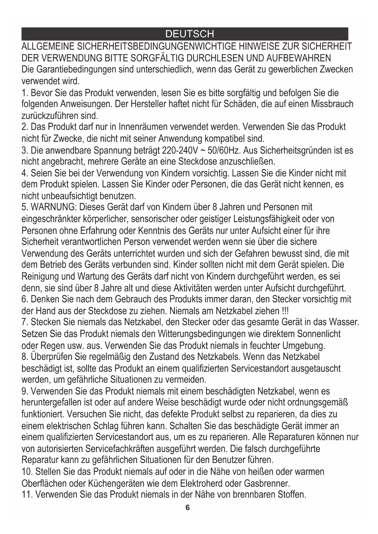 5. WARNUNG: Dieses Gerät darf von Kindern über 8 Jahren und Personen mit