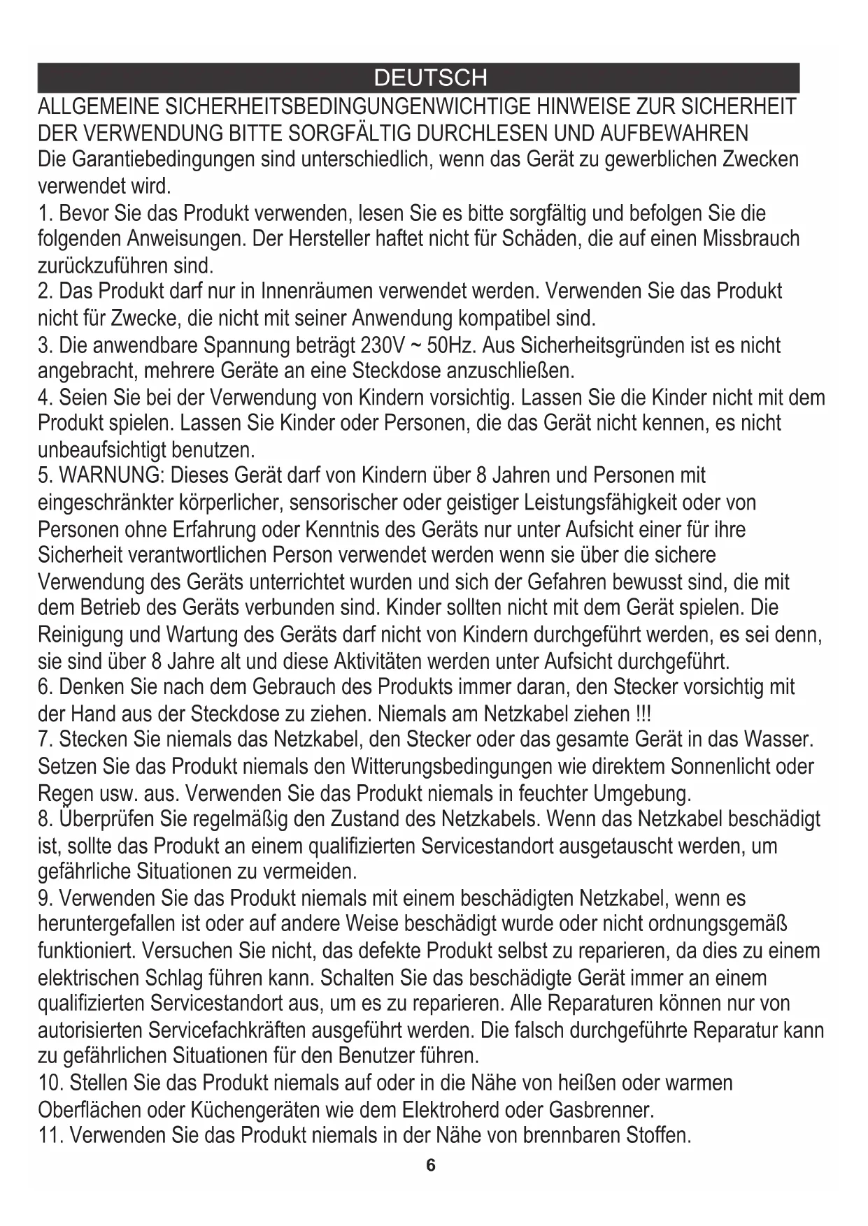 5. WARNUNG: Dieses Gerät darf von Kindern über 8 Jahren und Personen mit