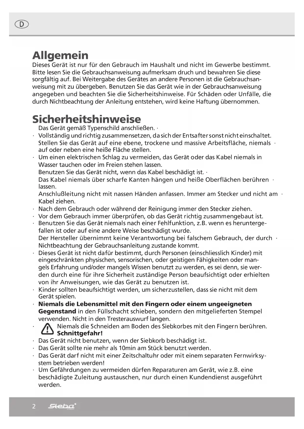 E 90 - Entsafter STEBA - Kostenlose Bedienungsanleitung