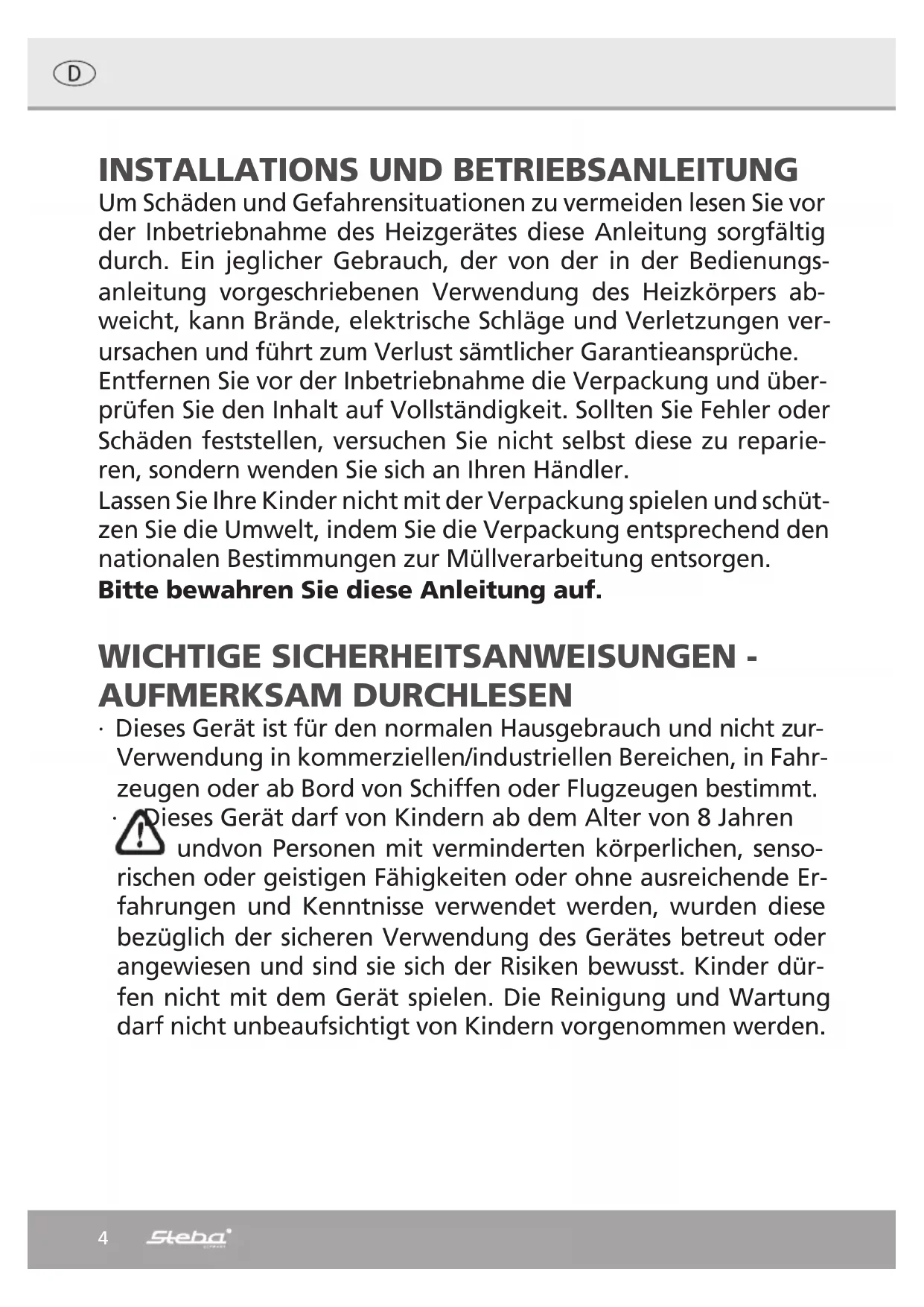 Laden Sie die Anleitung für Ihr Heizung kostenlos im PDF-Format! Finden Sie Ihr Handbuch QH 1800 - STEBA und nehmen Sie Ihr elektronisches Gerät wieder in die Hand. Auf dieser Seite sind alle Dokumente veröffentlicht, die für die Verwendung Ihres Geräts notwendig sind. QH 1800 von der Marke STEBA.