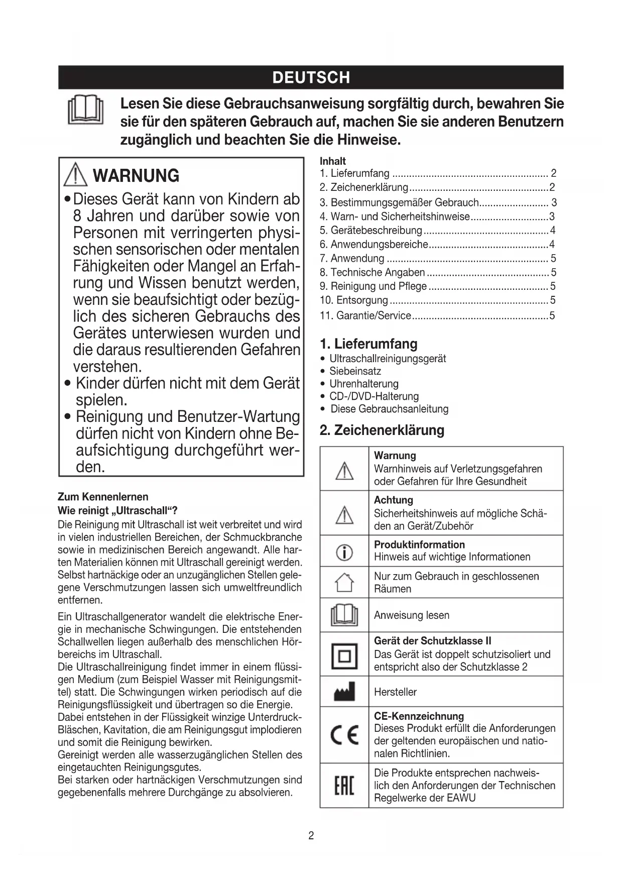 Ultraschallreinigungsgerät Gebrauchsanweisung ....................... 2