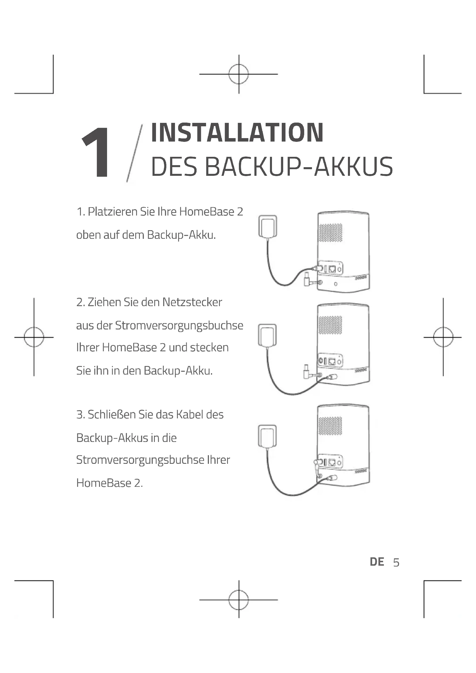 Backup-Akkus in die Stromversorgungsbuchse Ihrer HomeBase 2. INSTALLATION DES BACKUP-AKKUS 1DE