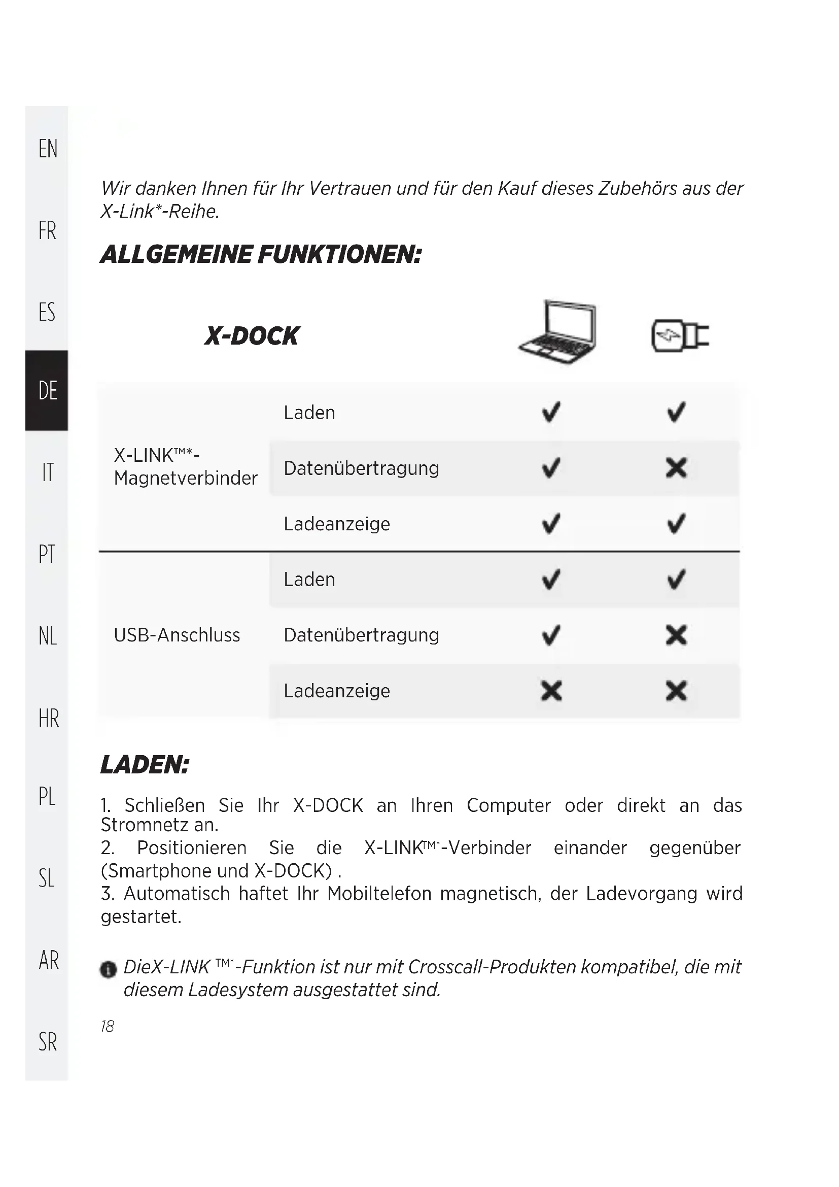 BEDIENUNGSANLEITUNG XDOCK CROSSCALL