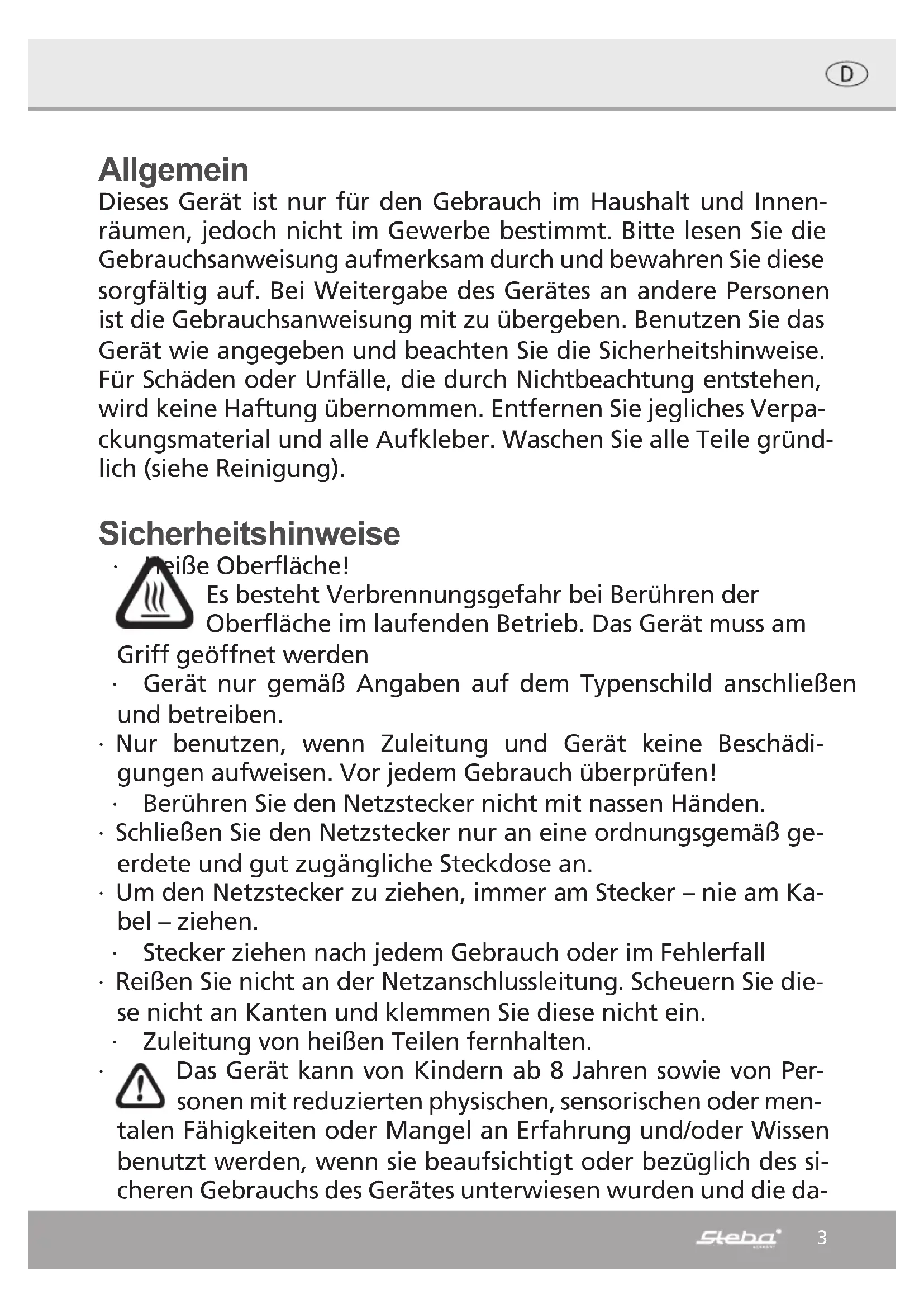 e-Mail: elektro@steba.com Internet: http://www.steba.com