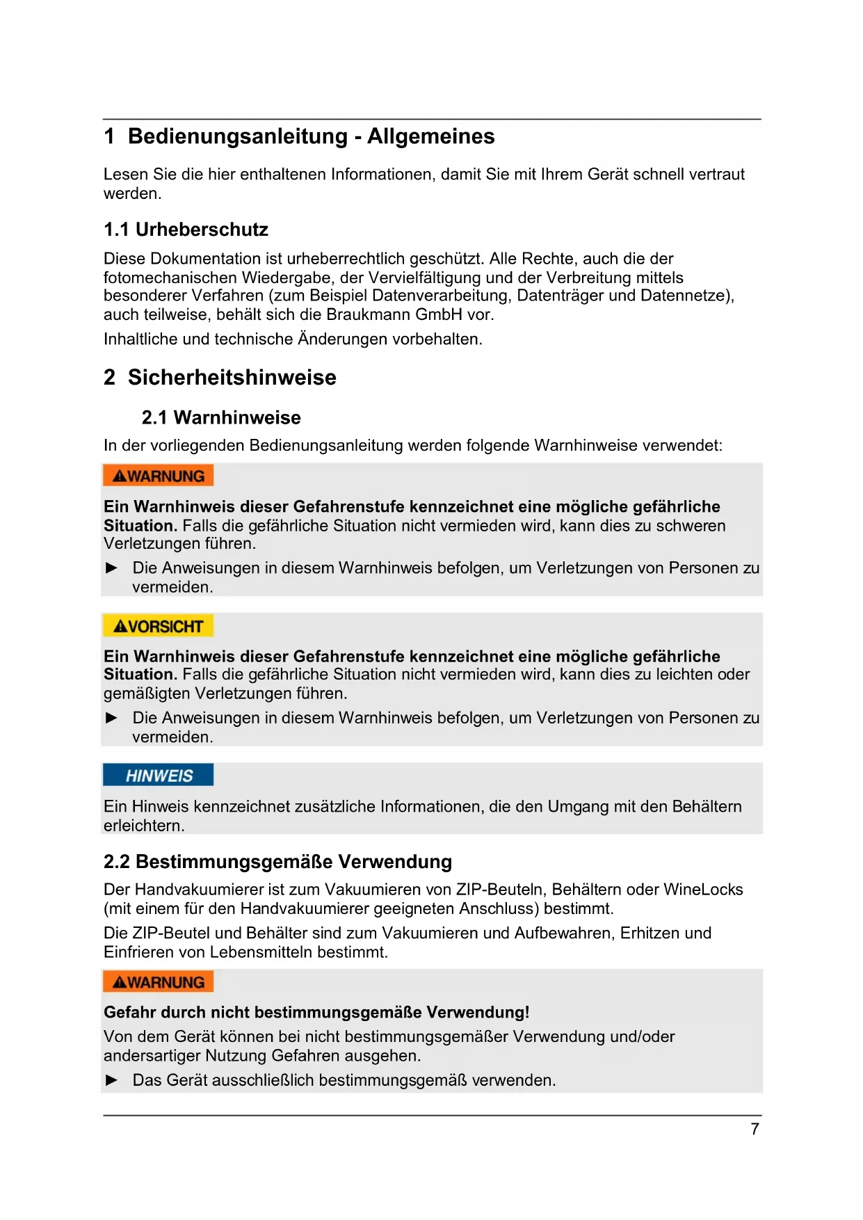 Diese Dokumentation ist urheberrechtlich geschützt. Alle Rechte, auch die der fotomechanischen Wiedergabe, der Vervielfältigung und der Verbreitung mittels besonderer Verfahren (zum Beispiel Datenverarbeitung, Datenträger und Datennetze), auch teilweise, behält sich die Braukmann GmbH vor. Inhaltliche und technische Änderungen vorbehalten. 2 Sicherheitshinweise
