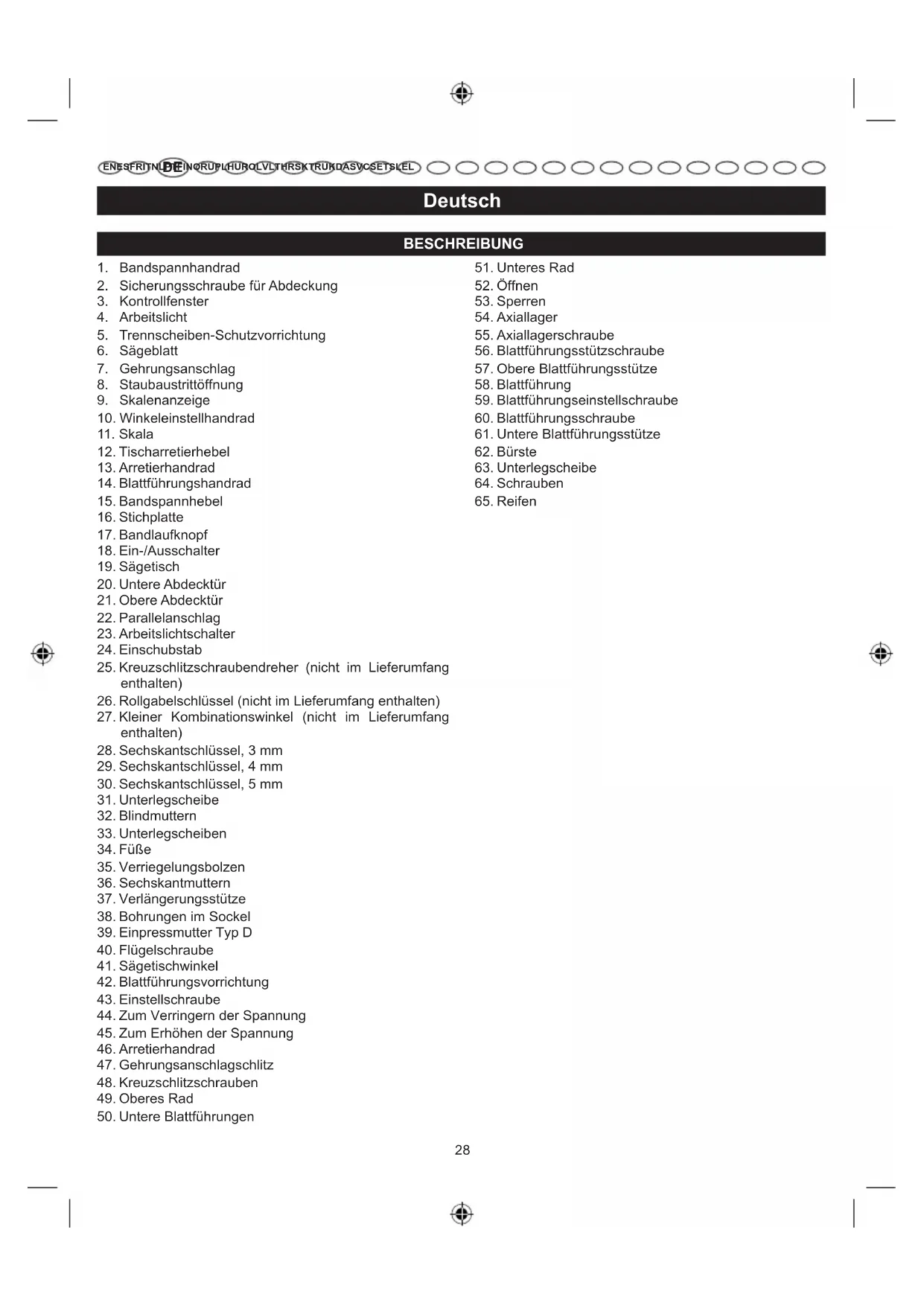 350W BANDSÄGE mIT ARBEITSLICHT BEDIENUNGSANLEITUNG 28