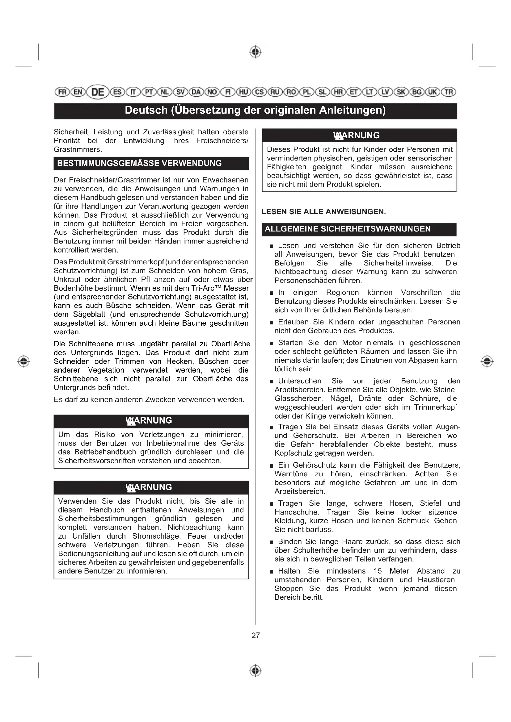 FREISCHNEIDER/GRASTRIMMER BEDIENUNGSANLEITUNG 27