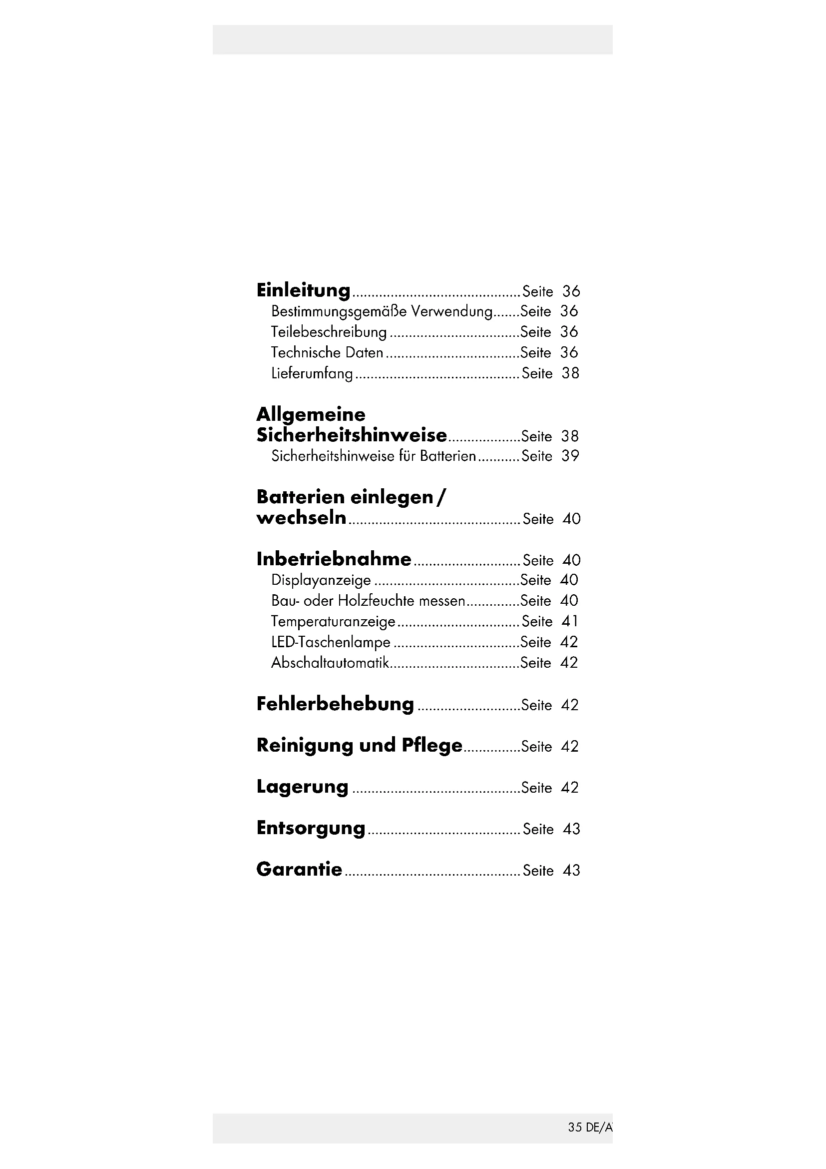 | DE/AT/CH Bedienungs- und Sicherheitshinweise | Seite 35 | |