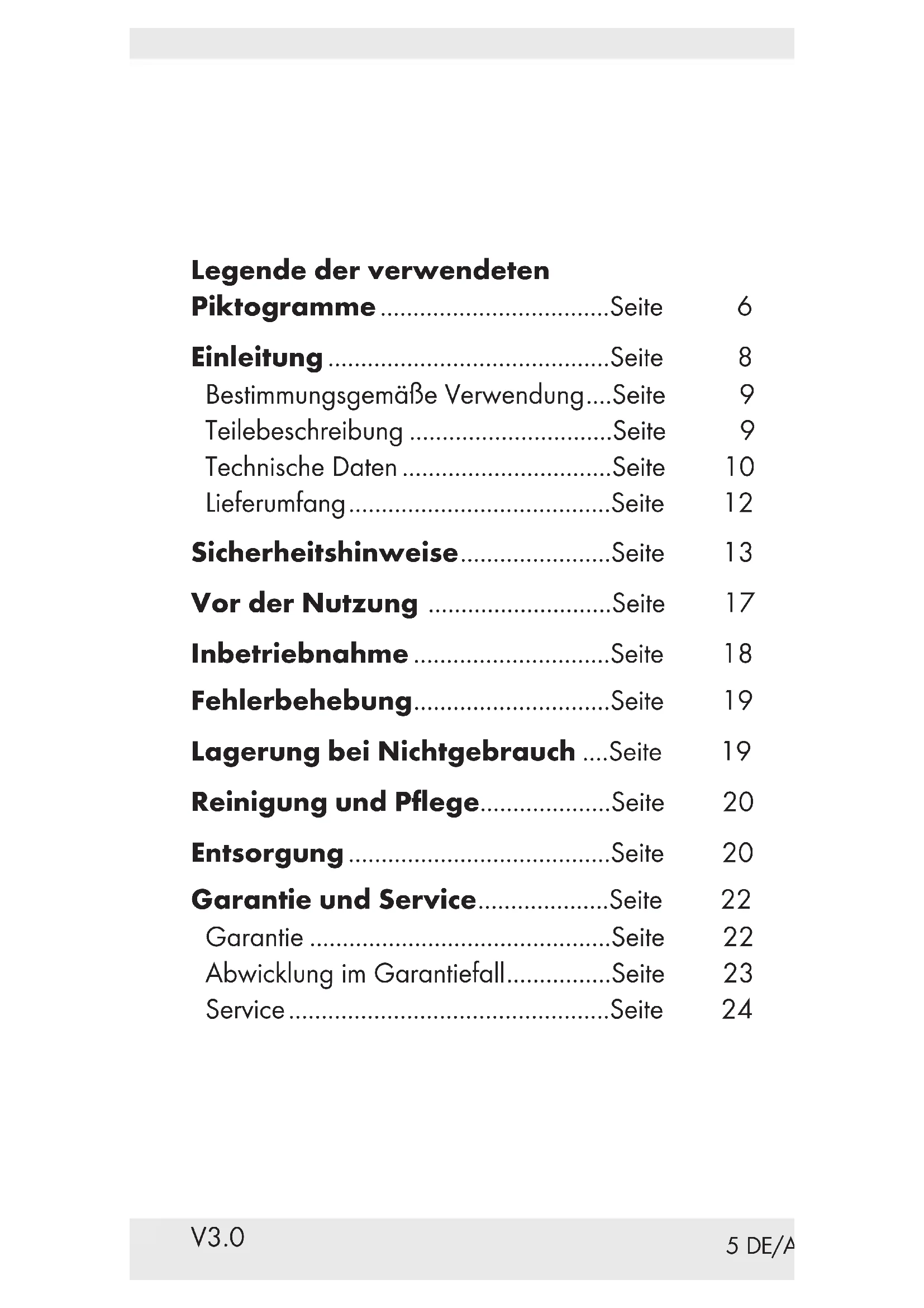 Betjenings- og sikkerhedsbemærkninger Side 1551 25 DE/AT/CH Legende der verwendeten Piktogramme ...................................Seite 6 Einleitung ...........................................Seite 8 Bestimmungsgemäße Verwendung ....Seite 9 Teilebeschreibung ...............................Seite 9 Technische Daten ................................Seite 10 Lieferumfang ........................................Seite 12 Sicherheits hinweise .......................Seite 13 Vor der Nutzung ............................Seite 17 Inbetriebnahme ..............................Seite 18 Fehlerbehebung ..............................Seite 19 Lagerung bei Nichtgebrauch ....Seite 19 Reinigung und Pflege....................Seite 20 Entsorgung ........................................Seite 20 Garantie und Service ....................Seite 22 Garantie ..............................................Seite 22 Abwicklung im Garantiefall ................Seite 23 Service .................................................Seite 24 V3.06 DE/AT/CH Legende der verwendeten Piktogramme Dieses Symbol mit dem Signalwort „GEFAHR“ bezeichnet eine Gefährdung mit einem hohen Risikograd, die, wenn sie nicht vermieden wird, eine schwere Verletzung oder den Tod zur Folge hat. Dieses Symbol mit dem Signalwort „WARNUNG“ bezeichnet eine Gefährdung mit einem mittleren Risikograd, die, wenn sie nicht vermieden wird, eine schwere Verletzung zur Folge haben kann. Dieses Symbol mit dem Signalwort „VORSICHT“ bezeichnet eine Gefährdung mit einem niedrigen Risikograd, die, wenn sie nicht vermieden wird, eine geringe oder mäßige Verletzung zur Folge haben kann.7 DE/AT/CH Dieses Symbol weist in Kombination mit dem Signalwort „ACHTUNG“ auf einen möglichen Sachschaden hin. Dieses Symbol mit dem Signalwort „Hinweis“ bietet weitere nützliche Informationen. Gleichstrom / -spannung Wechselstrom / -spannung Produkt ausschließlich in trockenen Innenräumen verwenden. Schutzklasse II. Das Produkt hat eine doppelte Isolierung und es ist keine Sicherheitsverbindung mit einer Erdung erforderlich. Technologie zur Optierung der Ladezeit8 DE/AT/CH DUAL-USB-LADEGERÄT P Einleitung Wir beglückwünschen Sie zum Kauf Ihres neuen Produkts. Sie haben sich damit für ein hochwertiges Produkt entschieden. Die Bedienungsanleitung ist Teil dieses Produkts. Sie enthält wichtige Hinweise für Sicherheit, Gebrauch und Entsorgung. Machen Sie sich vor der Benutzung des Produkts mit allen Bedien- und Sicherheitshinweisen vertraut. Benutzen Sie das Produkt nur wie beschrieben und für die angegebenen Einsatzbereiche. Händigen Sie alle Unterlagen bei Weitergabe des Produkts an Dritte mit aus. Das CE-Zeichen bestätigt Konformität mit den für das Produkt zutreffenden EU- Richtlinien.9 DE/AT/CH Bestimmungsgemäße Verwendung Dieses DUAL-USB-LADEGERÄT (nachfolgend als „Produkt“ bezeichnet) ist ein Gerät der Informationselektronik und dient zum Laden und Betrieb von USB-Geräten, die standardmäßig über einen USB-Anschluss aufgeladen oder betrieben werden. Das Produkt kann in einer normalen Steckdose verwendet werden, welche die unter „Technische Daten“ vermerkte Spannungsversorgung bereitstellt. Das Produkt ist nicht für den gewerblichen Einsatz bestimmt. Für aus bestimmungswidriger Verwendung entstandene Schäden übernimmt der Hersteller keine Haftung. Teilebeschreibung Bitte beachten Sie die Ausklappseite.
