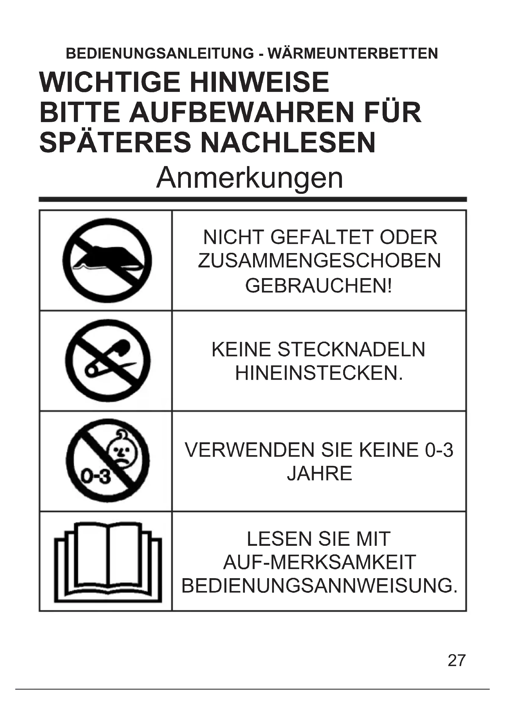 AUF-MERKSAMKEIT BEDIENUNGSANNWEISUNG. Anmerkungen28
