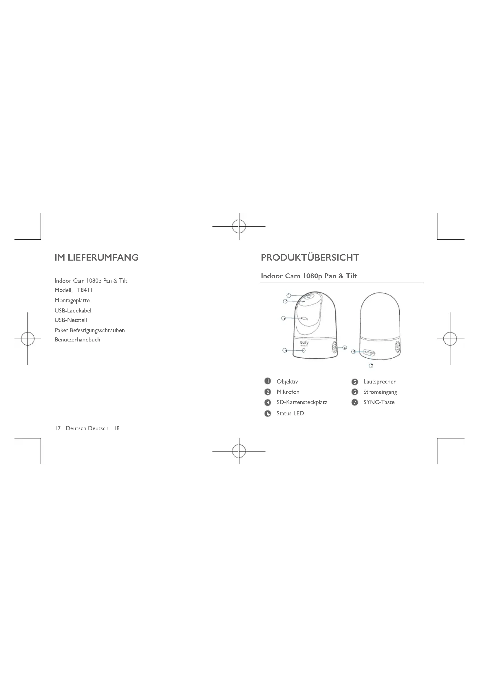 Finden Sie kostenlos die Bedienungsanleitung des Geräts Indoor Cam 1080p Pan & Tilt eufy als PDF.