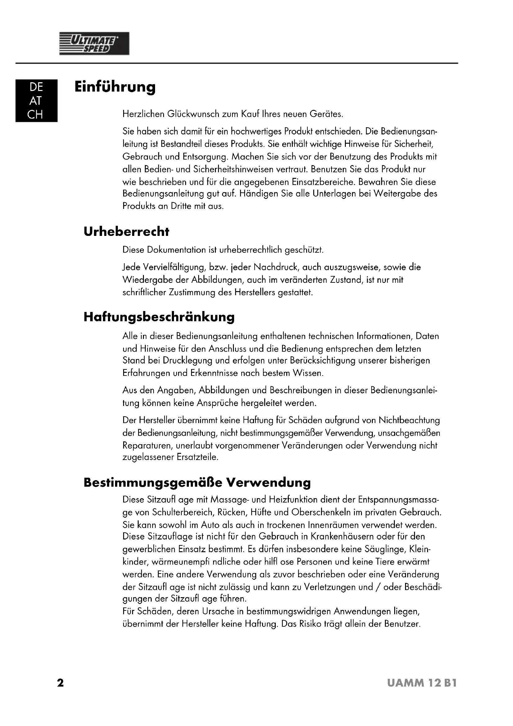 BEDIENUNGSANLEITUNG UAMM 12 B1 ULTIMATE SPEED